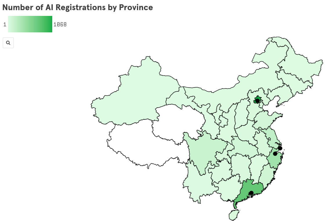 Gần 80% đăng ký AI tạo sinh của Trung Quốc tập trung trong và xung quanh những trung tâm công nghệ hàng đầu như Bắc Kinh, Thâm Quyến, Thượng Hải và Hàng Châu. Mỗi nơi có thế mạnh riêng.