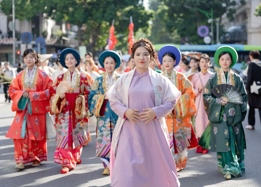 Đoàn diễn di chuyển qua các tuyến phố: Lê Thánh Tông – Lý Thường Kiệt – Hàng Bài – khu vực hồ Hoàn Kiếm – Tràng Tiền – Phủ Doãn – trở lại điểm xuất phát. Hai bên đường, đông đảo nhiếp ảnh gia và du khách tạo nên những “studio ngoài trời”, ghi lại hàng loạt khoảnh khắc ấn tượng.