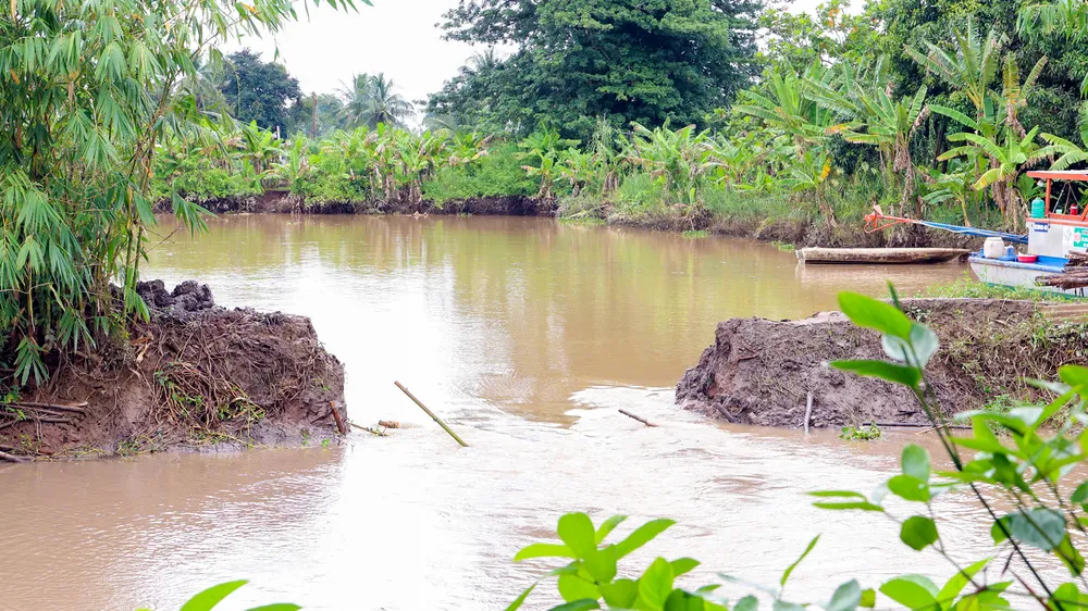 Rạng sáng 6-11, một đoạn đê bao ở khu vực cồn Sơn (thuộc phường Bình Thủy, TP Cần Thơ) bất ngờ bị vỡ, làm nước từ sông Hậu tràn vào gây ngập sâu, ảnh hưởng nhà dân, vườn cây ăn trái, ao cá…