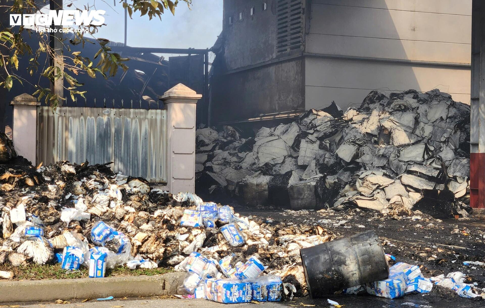Hàng trăm tấn nguyên liệu cũng bị thiêu rụi.