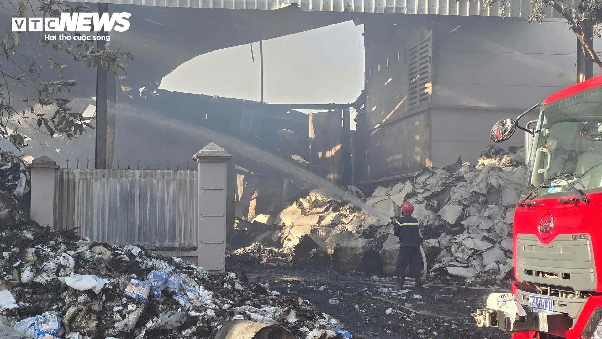 Do vật liệu cháy chủ yếu là bông, bỉm, giấy, nhựa, lửa vẫn âm ỉ nên công tác dập tàn tiếp tục được triển khai vào hôm sau (28/11).