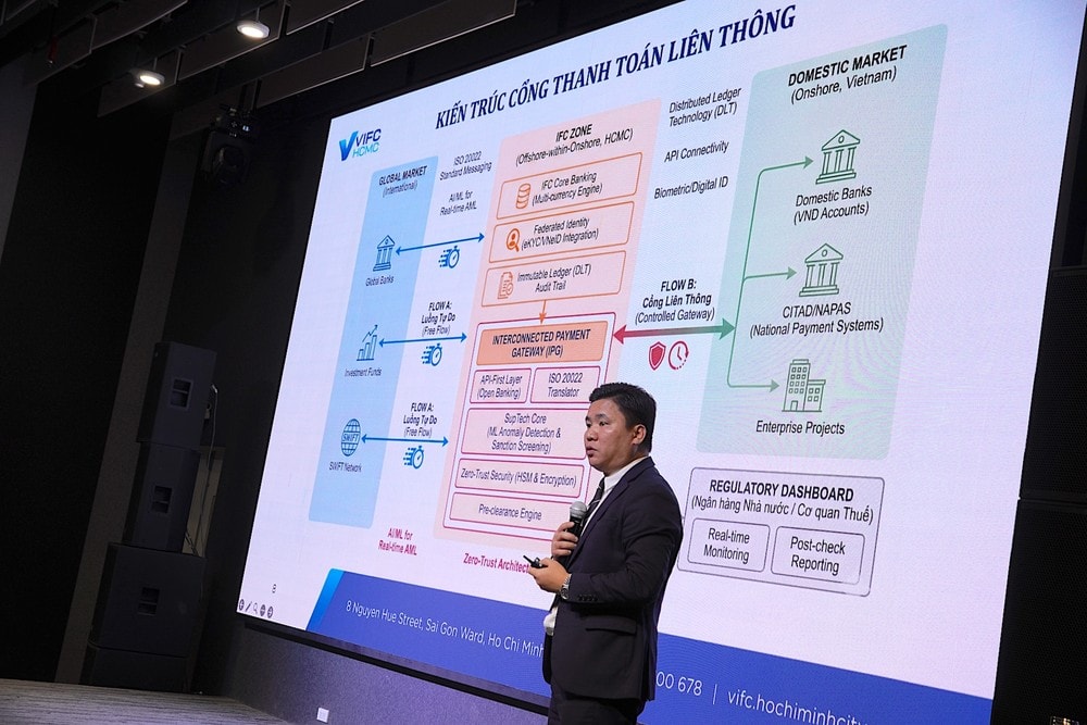 Về công nghệ, TP.HCM đặt mục tiêu vận hành một hệ thống thanh toán tức thời theo chu kỳ thanh toán T+0 (thanh toán trong ngày giao dịch), nghĩa là giao dịch được xác lập và hoàn tất ngay tại thời điểm thực hiện. Mục tiêu này đòi hỏi phải có hạ tầng kỹ thuật hiện đại, đồng thời phải tích hợp chặt chẽ giữa ngân hàng, ví điện tử và nền tảng blockchain. Nếu đạt được, hệ thống này sẽ giúp giảm thiểu rủi ro tín dụng, tăng tốc độ luân chuyển dòng vốn và tạo lợi thế cạnh tranh cho thị trường tài chính trong nước.