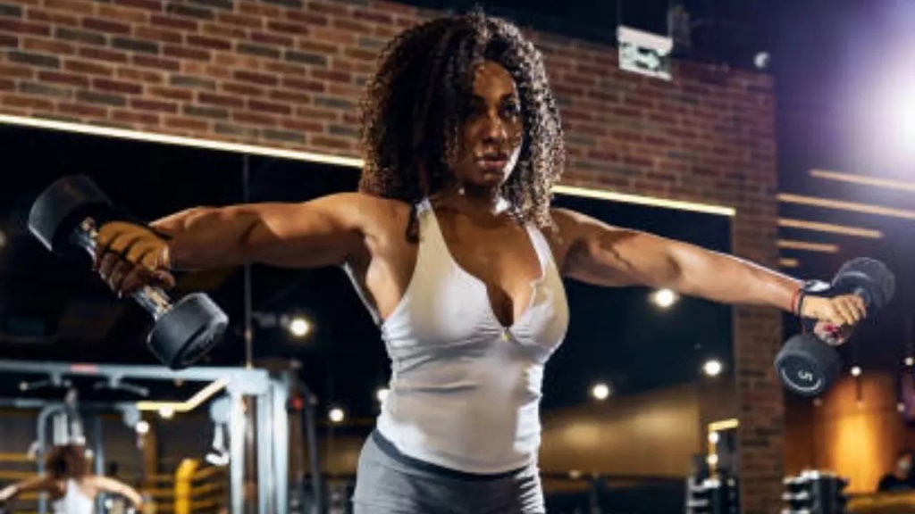 Cách thực hiện: Bài tập này không chỉ tập trung vào phần vai trên mà còn giúp săn chắc cơ nhị đầu và cơ tam đầu. Đứng hoặc ngồi, cầm một quả tạ đơn ở mỗi tay, lòng bàn tay hướng vào hông. Giữ tay thẳng, từ từ nâng tạ sang hai bên cho đến khi cơ thể tạo thành hình chữ "T". Sau đó hạ tay trở về vị trí ban đầu. Lặp lại 10–20 lần.