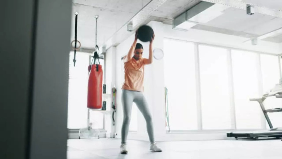 Cách thực hiện: Đập bóng là bài tập toàn thân hiệu quả, tác động mạnh đến cánh tay, cơ trung tâm (core) và sức mạnh tổng thể. Đứng thẳng, hai chân rộng bằng vai, cầm một quả bóng. Giơ bóng qua đầu, dùng cơ trung tâm và cơ tay để đập bóng xuống đất. Khi bóng bật lên, bắt bóng trong tư thế ngồi xổm và lặp lại động tác.