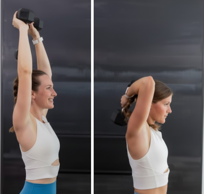 Cách thực hiện:Ngồi trên ghế, cầm một quả tạ bằng cả hai tay, duỗi thẳng tay qua đầu. Từ từ gập khuỷu tay, hạ tạ gần vai, sau đó duỗi thẳng trở lại, giữ khuỷu tay sát đầu trong suốt quá trình.