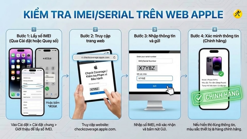 Kiểm tra IMEI/Serial Number trên trang web chính thức của Apple.