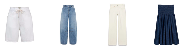 Denim phiên bản mùa hè được làm mỏng và mềm hơn, giúp giữ được phom dáng mà không gây nóng. Từ quần ống rộng đến chân váy midi, denim vẫn là lựa chọn linh hoạt cho nhiều hoàn cảnh.