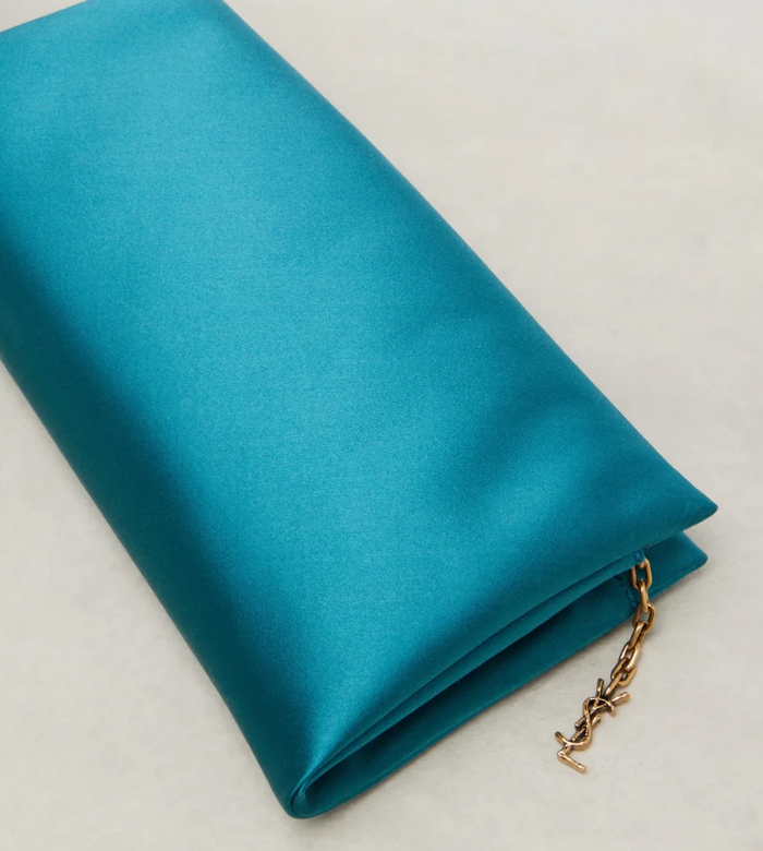 Ví cầm tay dự tiệc Saint Laurent Soft Clutch: mang đậm phong cách cổ điển, vừa sắc sảo lại vừa mềm mại. Ảnh: Who What Wear
