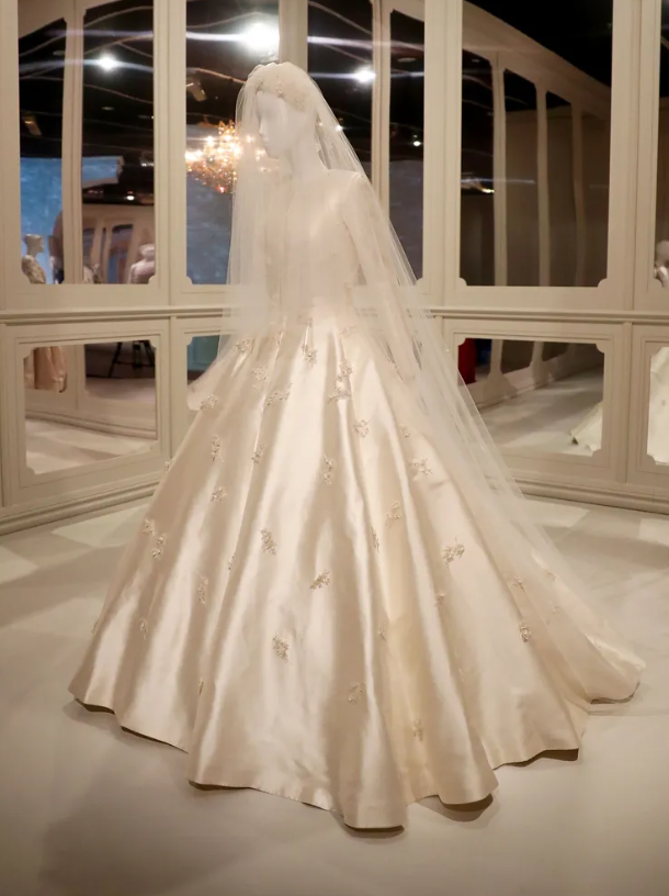 Đám cưới năm 1956 giữa Grace Kelly và Rainier III được xem là một trong những sự kiện hoàng gia lãng mạn nhất thế kỷ. Chiếc váy cưới do nhà thiết kế Helen Rose thực hiện cùng đội ngũ 30 thợ may, nổi bật với bodice ren tinh xảo và hàng nghìn hạt ngọc trai nhỏ được khâu tay. Thiết kế này hiện vẫn được lưu giữ tại Philadelphia Museum of Art.