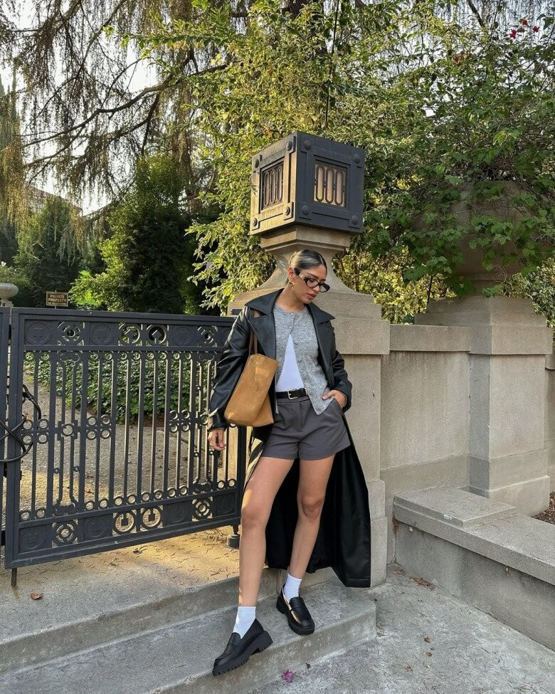 Giày loafers kết hợp cùng tất trắng cao hơn mắt cá từ 2–3cm tạo cảm giác gọn gàng cho phần bắp chân. Khi đi cùng chân váy ngắn hoặc quần short, combo này mang lại hiệu ứng chân thon và dài hơn thực tế. Ảnh: @shelly.camar