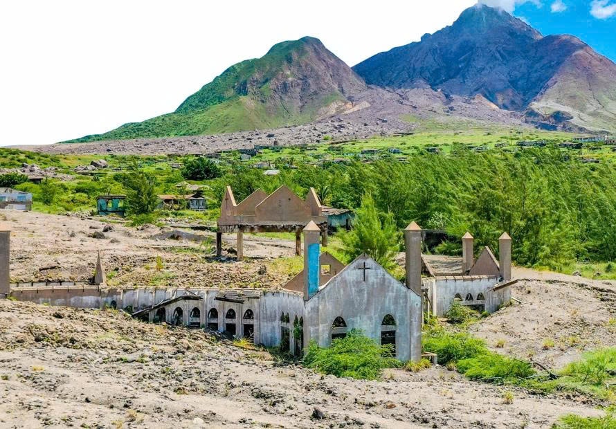 Tàn tích một công trình tại Plymouth, đảo Montserrat. Ảnh: visitmontserrat.com