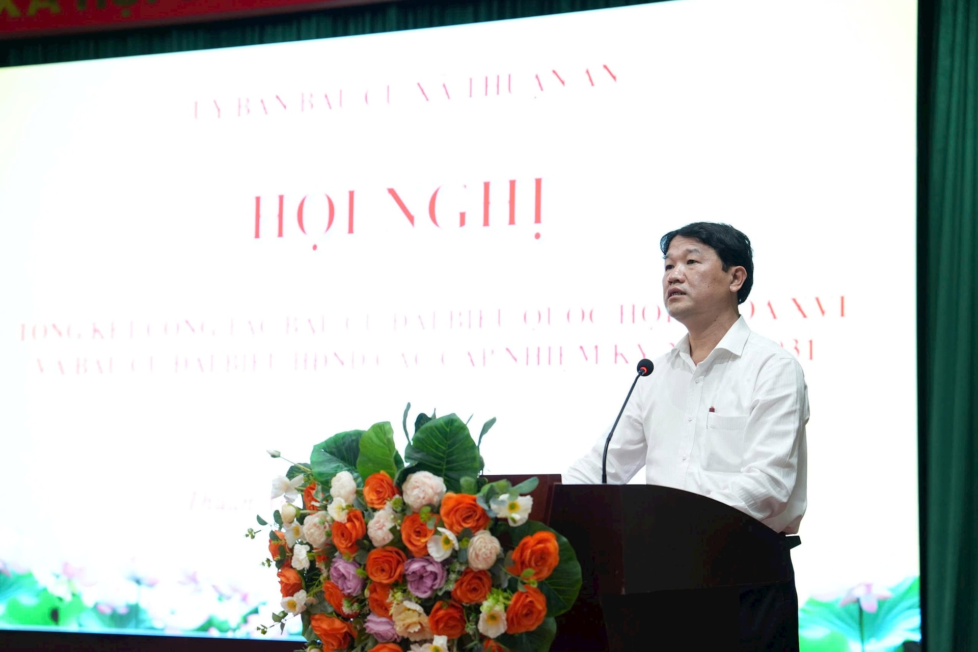 Phát biểu tại hội nghị, Bí thư Đảng ủy, Chủ tịch HĐND, Chủ tịch Ủy ban Bầu cử xã Thuận An Trương Văn Học nhấn mạnh: Kỳ bầu cử đại biểu Quốc hội khóa XVI và đại biểu HĐND các cấp nhiệm kỳ 2026- 2031 diễn ra trong bối cảnh đặc biệt với nhiều thách thức chưa từng có tiền lệ. Tuy nhiên, dưới sự chỉ đạo sát sao của Thành ủy, UBND thành phố và sự nỗ lực của cả hệ thống chính trị, cuộc bầu cử đã thành công tốt đẹp.