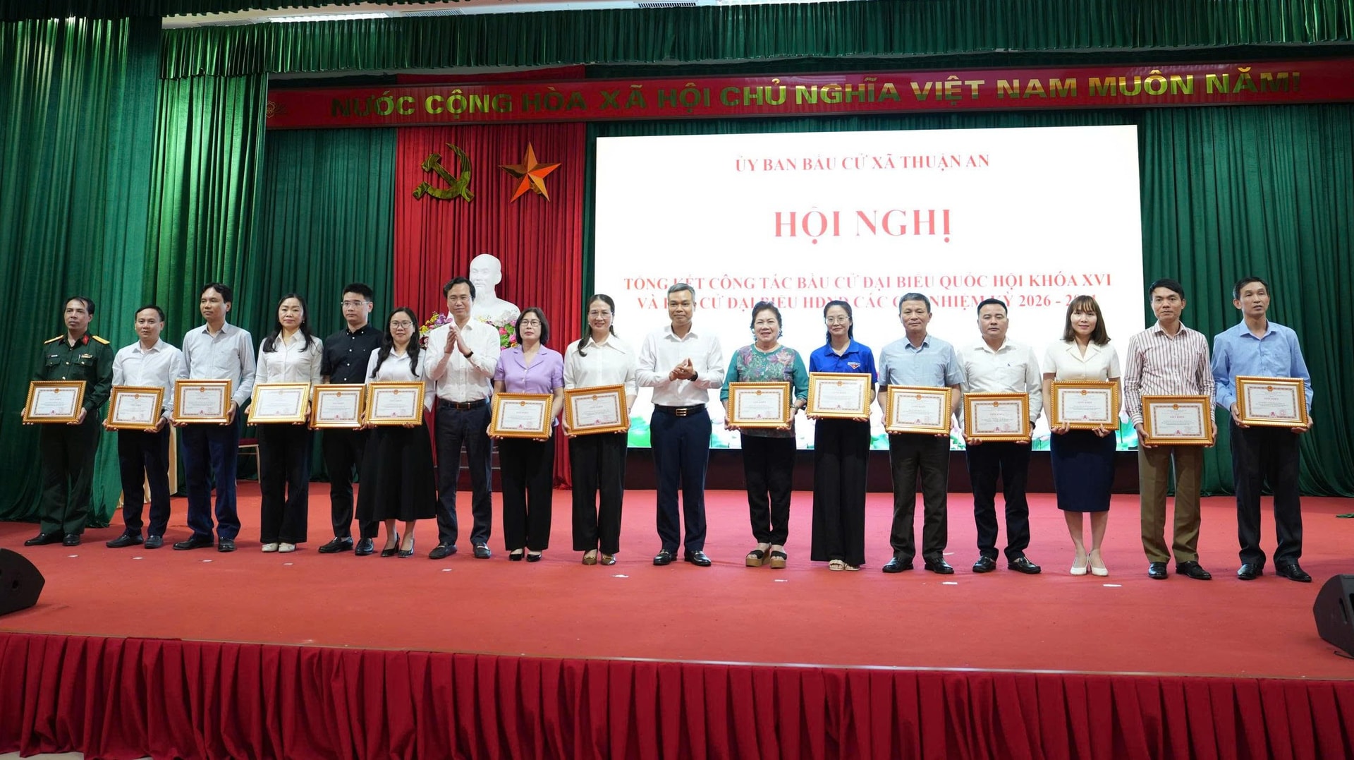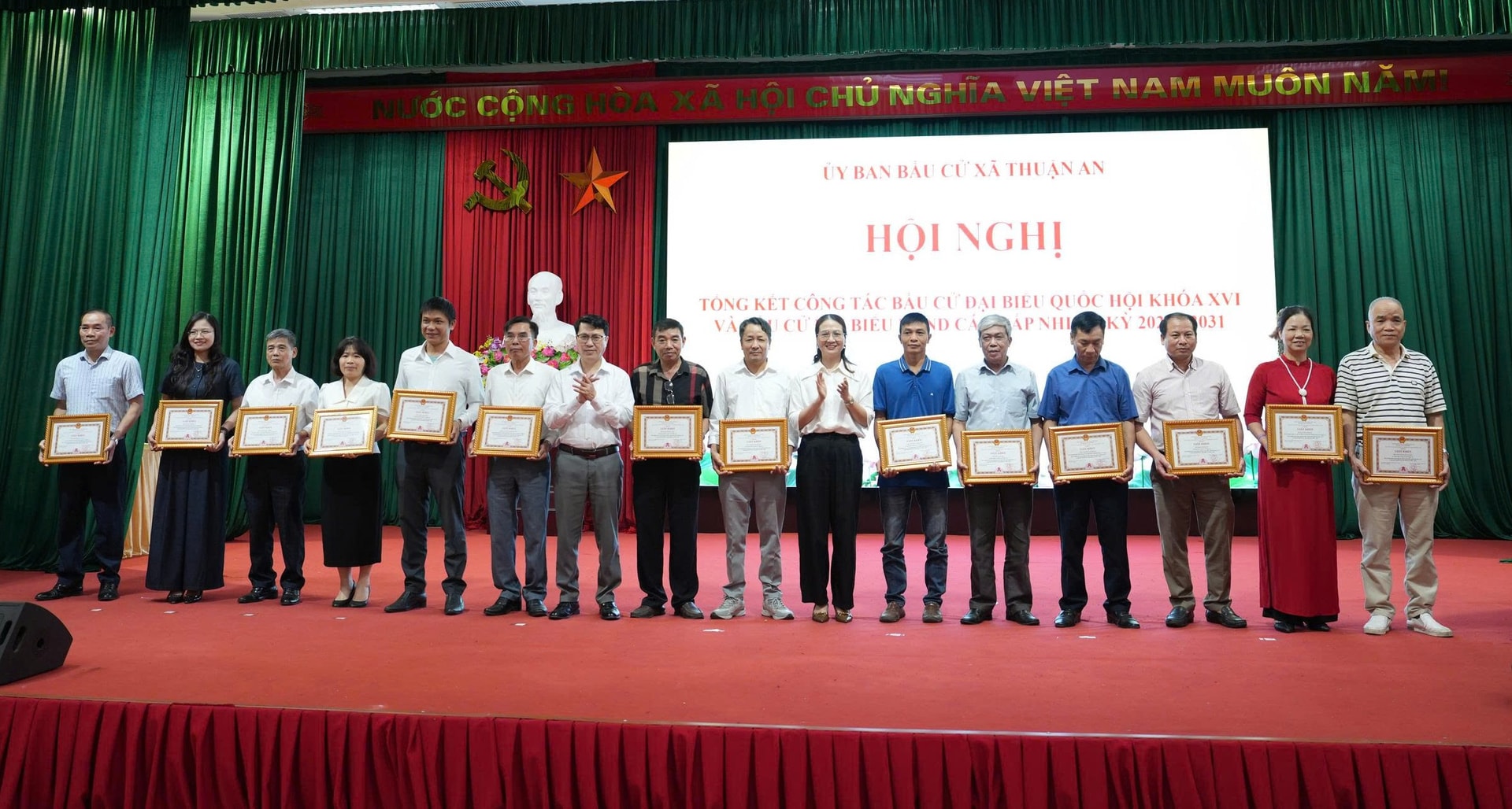 Dịp này, 9 tập thể và 8 cá nhân có thành tích xuất sắc trong công tác bầu cử được nhận Bằng khen của Chủ tịch UBND thành phố Hà Nội. Xã Thuận An trao Giấy khen cho 67 tập thể và 202 cá nhân xuất sắc.