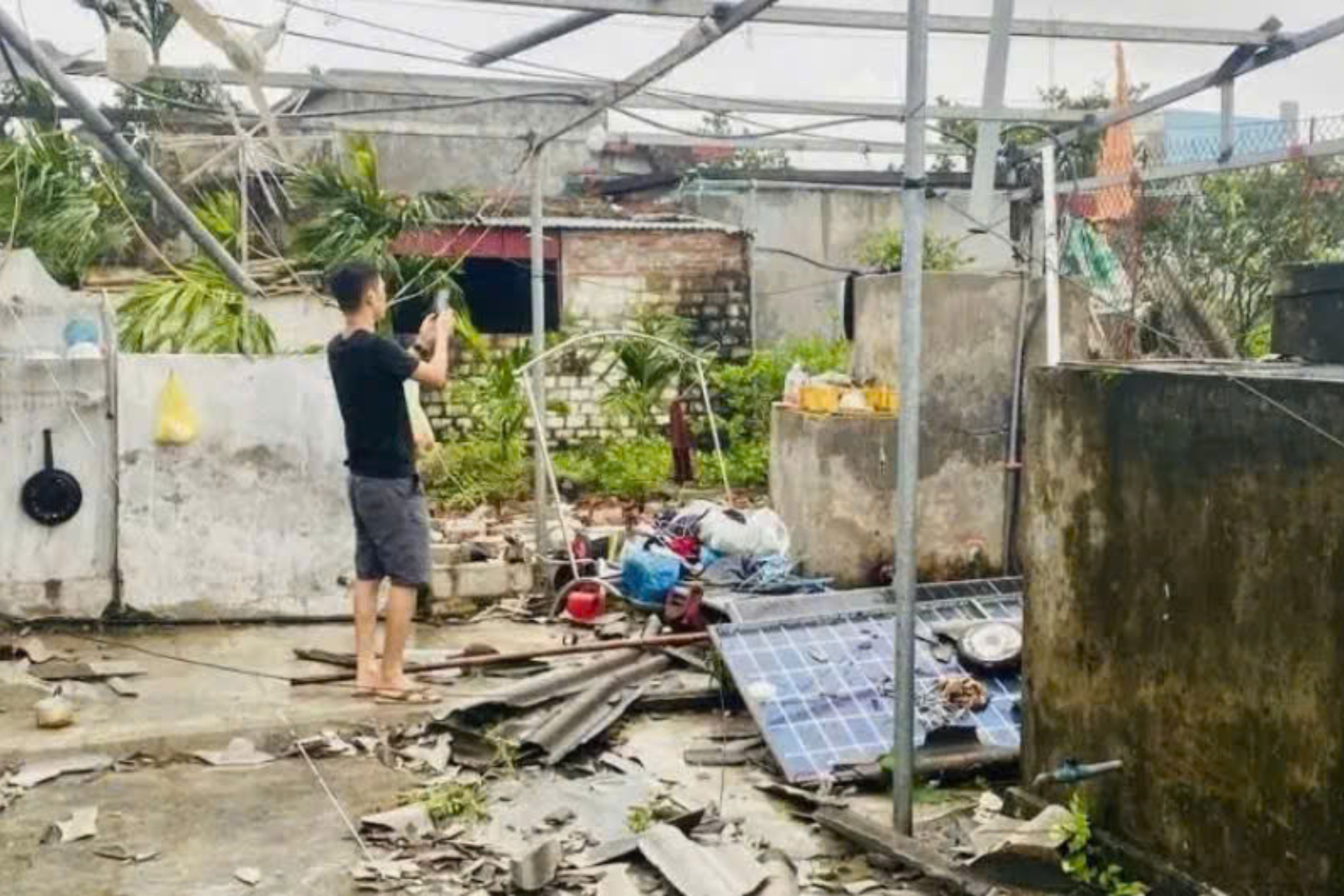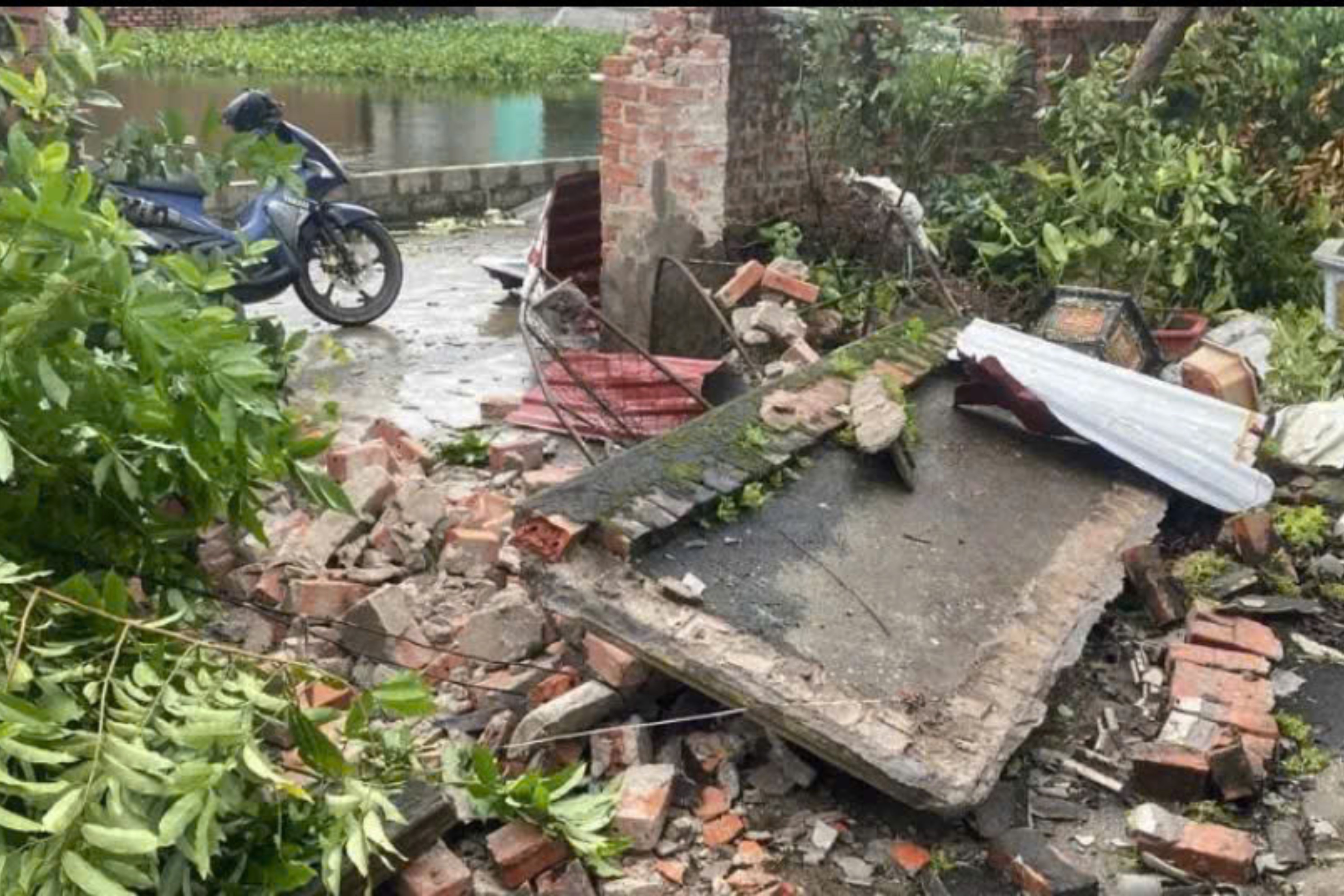 Anh cho biết căn nhà ba gian lợp ngói cũ gần như bị tốc mái hoàn toàn, chi phí sửa chữa ước tính khoảng 20 triệu đồng.