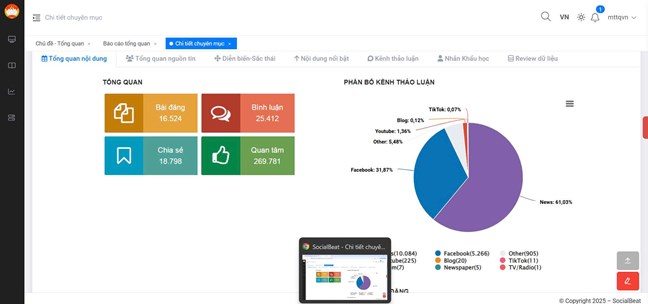 Giao diện hệ thống phần mềm Cổng Mặt trận số của MTTQ Việt Nam