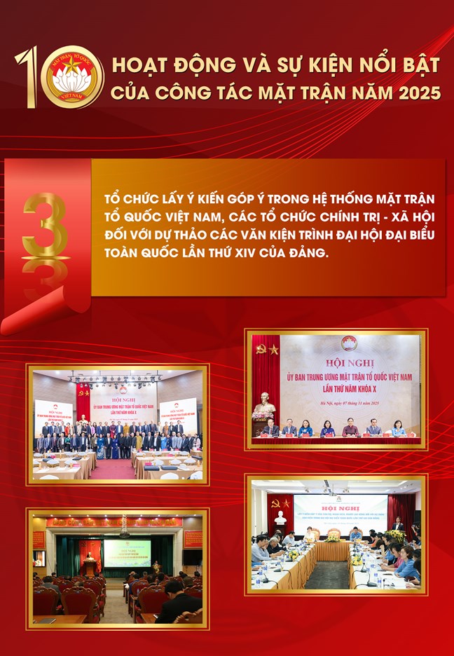 3. Tổ chức lấy ý kiến góp ý trong hệ thống Mặt trận Tổ quốc Việt Nam, các tổ chức chính trị - xã hội đối với dự thảo các văn kiện trình Đại hội đại biểu toàn quốc lần thứ XIV của Đảng.