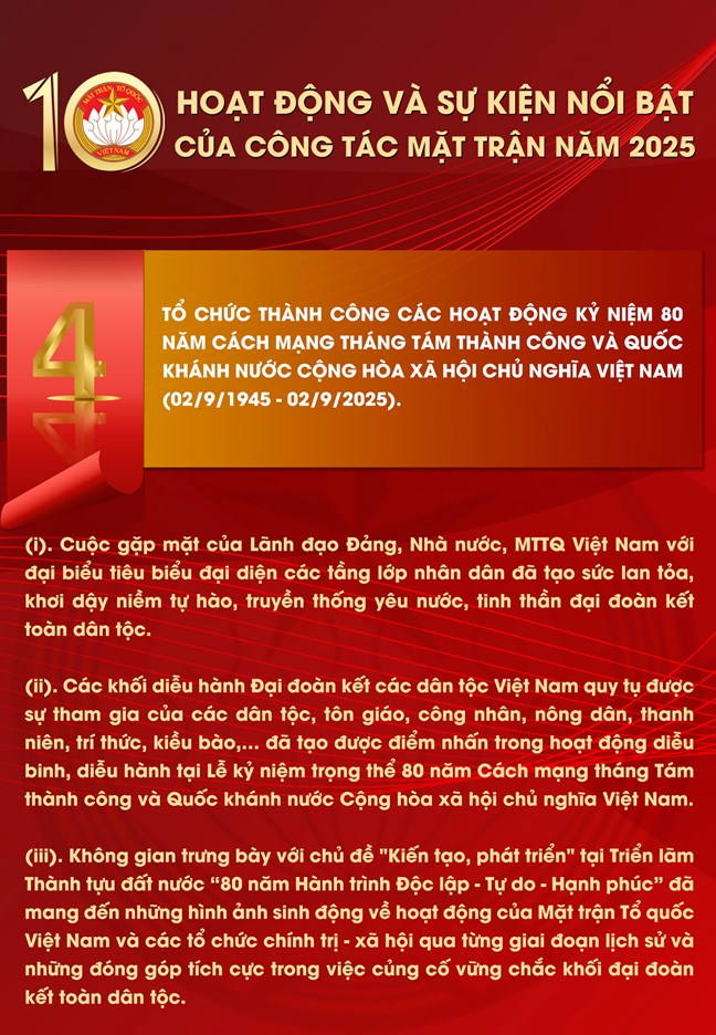 4. Tổ chức thành công các hoạt động kỷ niệm 80 năm Cách mạng tháng Tám thành công và Quốc khánh nước Cộng hòa xã hội chủ nghĩa Việt Nam (02/9/1945 - 02/9/2025):