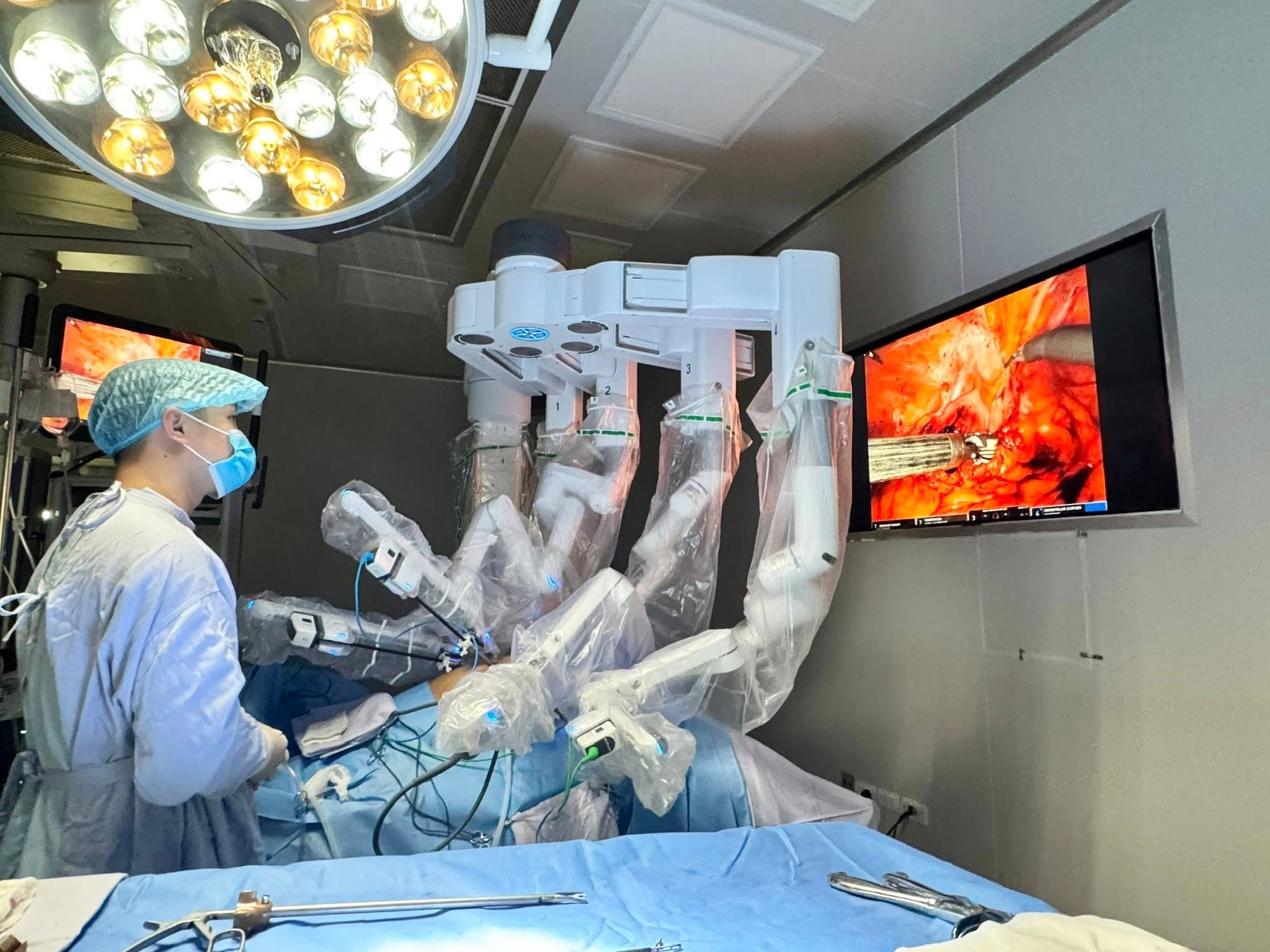 Hệ thống robot được sử dụng trong ca phẫu thuật. Ảnh: BVCC