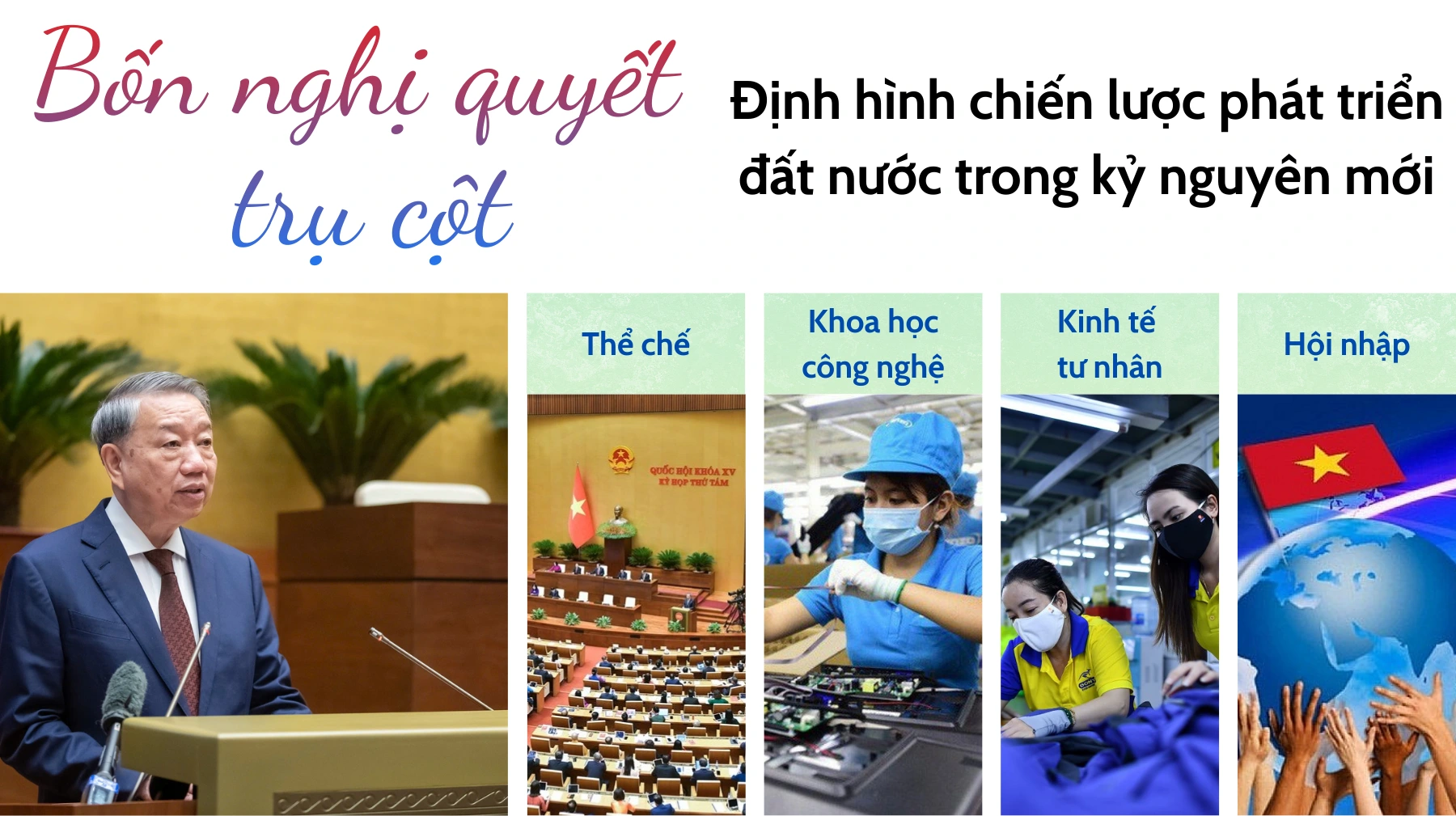Bốn nghị quyết trên có mối quan hệ chặt chẽ, bổ trợ lẫn nhau, tạo thành khuôn khổ định hướng lớn cho phát triển đất nước trong giai đoạn tới.