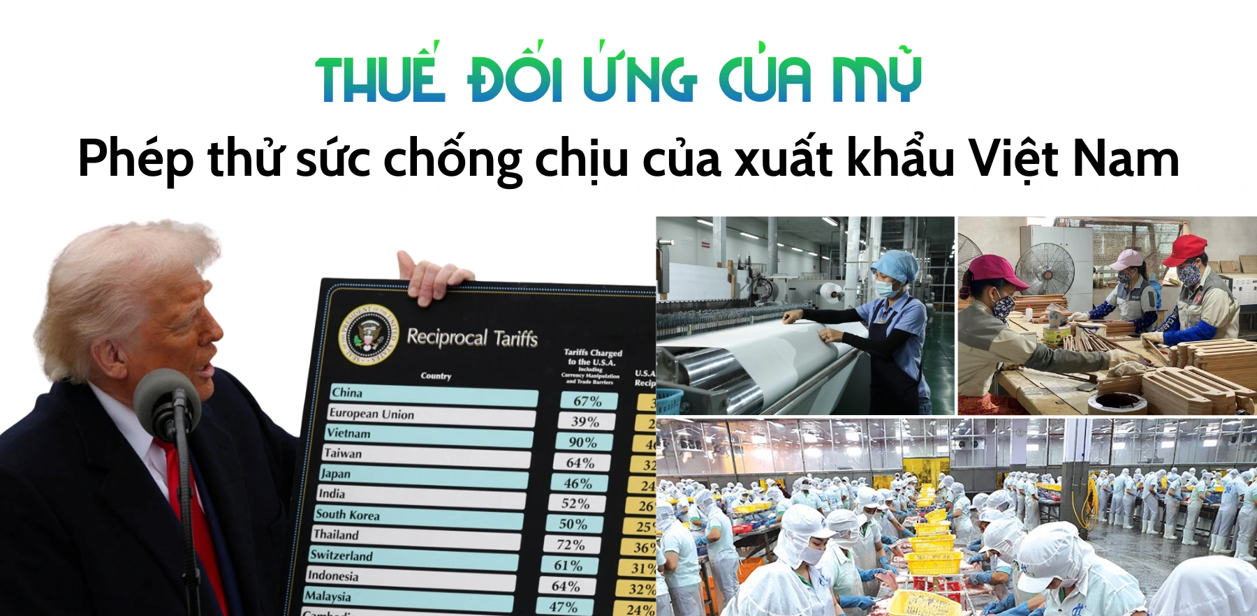 Theo Bộ Tài chính, mức thuế cao đột biến có nguy cơ ảnh hưởng tiêu cực đến nhiều ngành xuất khẩu chủ lực như điện tử, dệt may, da giày, nông nghiệp, trong bối cảnh năm 2024, Việt Nam xuất siêu sang Mỹ hơn 104 tỉ đô la Mỹ.