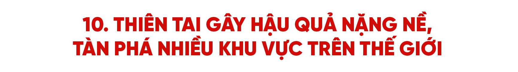 Hàng loạt hiện tượng thời tiết cực đoan như siêu bão, lũ lụt, hạn hán, nắng nóng lịch sử… đã gây ra các hậu quả nghiêm trọng tại tất cả các khu vực trên thế giới trong năm 2025. Các siêu bão như Melissa, Kalmaegi, Ragasa… tàn phá khu vực châu Á - Thái Bình Dương; lũ lụt ở Pakistan, Sri Lanka và Đông Nam Á; động đất ở Myanmar, Afghanistan; cháy rừng ở Mỹ; sóng nhiệt ở châu Âu và châu Á... Ước tính, thiên tai gây tổn thất cho kinh tế toàn cầu 220 tỷ USD. Thiên tai cũng ảnh hưởng nghiêm trọng đến thương mại, logistics và sản xuất, buộc nhiều nước phải tăng chi ngân sách cho tái thiết và ứng phó. Tổ chức Khí tượng Thế giới cảnh báo nhiệt độ toàn cầu trong năm đã có lúc vượt hơn 1,5 độ C so với thời kỳ tiền công nghiệp, khiến năm 2025 có thể trở thành năm nóng thứ 2 trong lịch sử. Trong khi đó, Hội nghị COP30 diễn ra tại Brazil tháng 11/2025 lại gây tiếc nuối khi không thống nhất được lộ trình loại bỏ nhiên liệu hóa thạch, vốn được xem là “thủ phạm” khiến Trái Đất ấm lên.