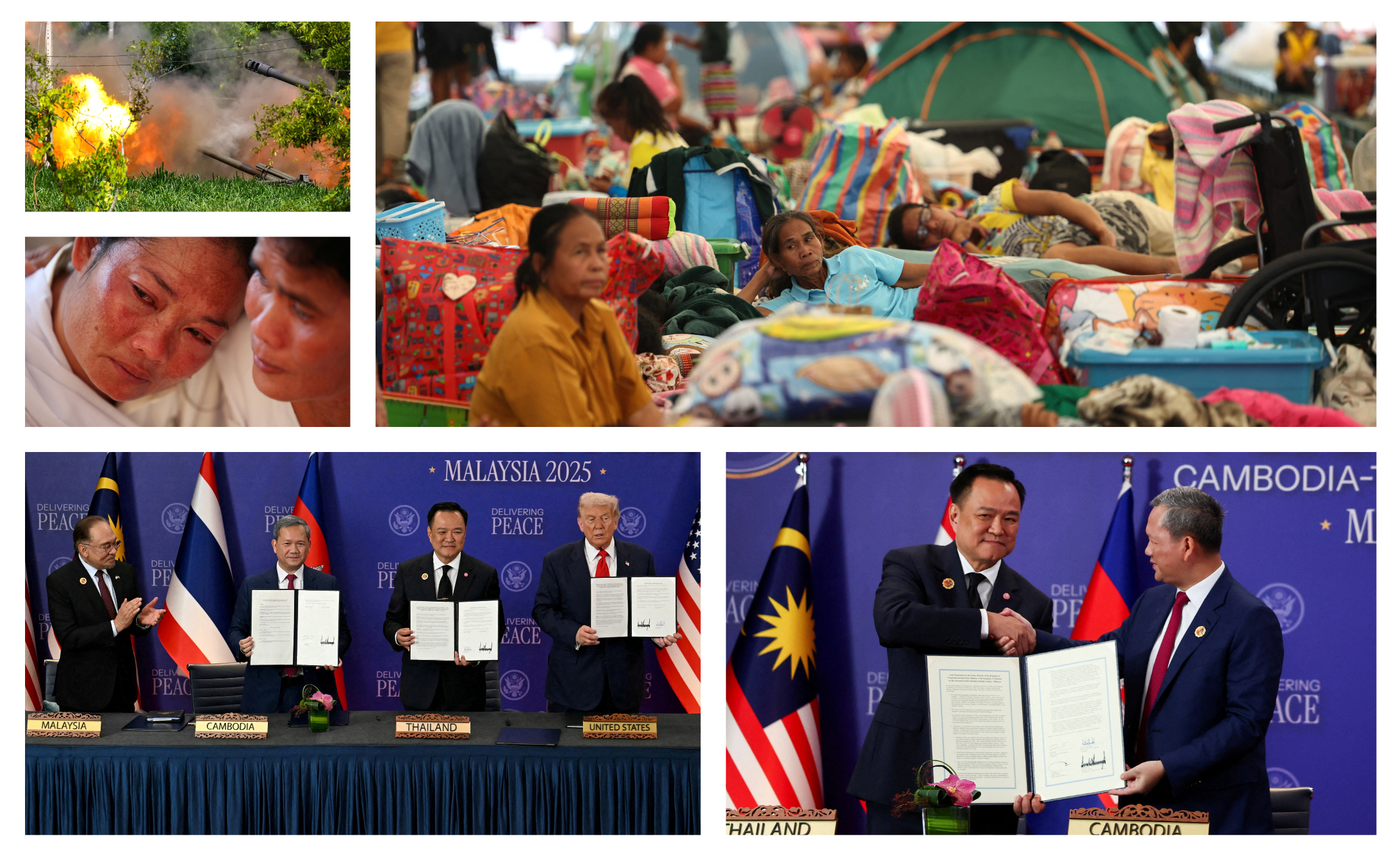 Từ những đụng độ nhỏ ở biên giới từ cuối tháng 5, ngày 24/7/2025, xung đột bùng phát giữa Thái Lan và Campuchia khi hai bên sử dụng các loại vũ khí hạng nặng tấn công vào nhiều địa điểm trên lãnh thổ của nhau. Đây là cuộc xung đột nghiêm trọng nhất giữa 2 quốc gia láng giềng ở Đông Nam Á kể từ lần đụng độ năm 2011 liên quan đến ngôi đền tranh chấp Preah Vihear. Sau những nỗ lực hòa giải của cộng đồng quốc tế, tại Hội nghị cấp cao ASEAN tháng 10/2025 ở Malaysia, Thái Lan và Campuchia đã ký Tuyên bố chung về thỏa thuận hòa bình, tái khởi động đàm phán.