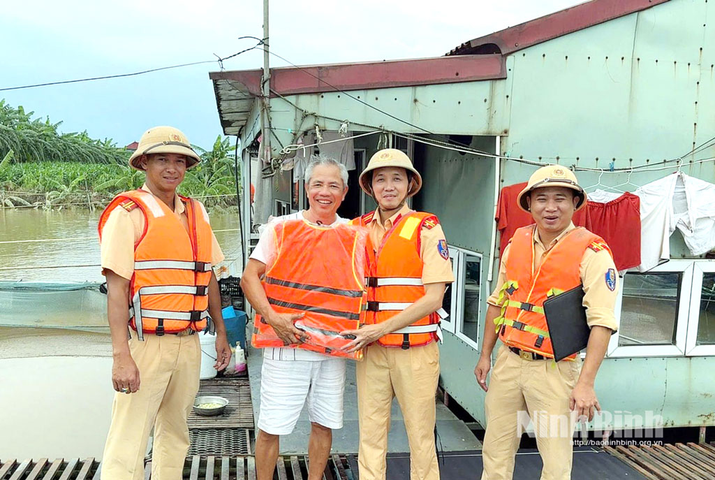 Lực lượng Cảnh sát giao thông đường thủy, Công an tỉnh tuyên truyền, nâng cao ý thức chấp hành pháp luật về bảo đảm trật tự, an toàn giao thông đường thủy cho người dân.