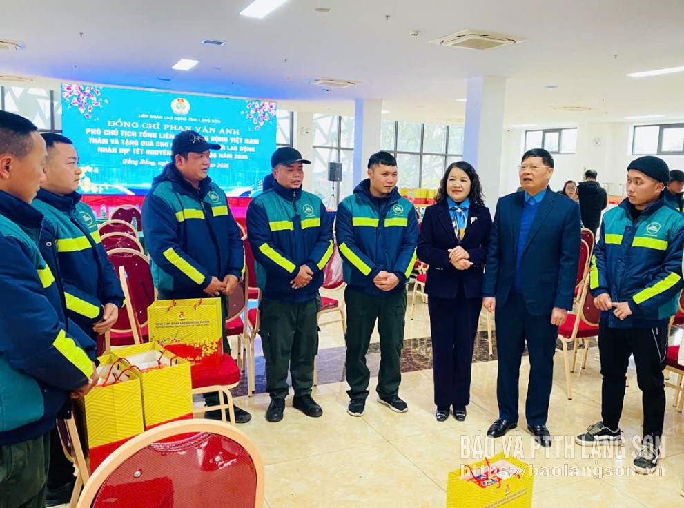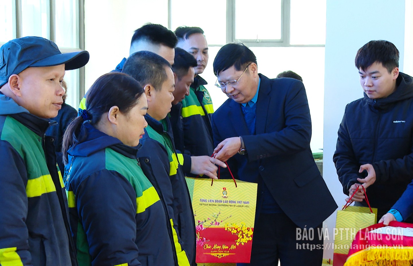 Đồng chí Phó Chủ tịch Tổng Liên đoàn Lao động Việt Nam, đồng chí Chủ tịch Liên đoàn Lao động tỉnh thăm hỏi đoàn viên, người lao động của công ty