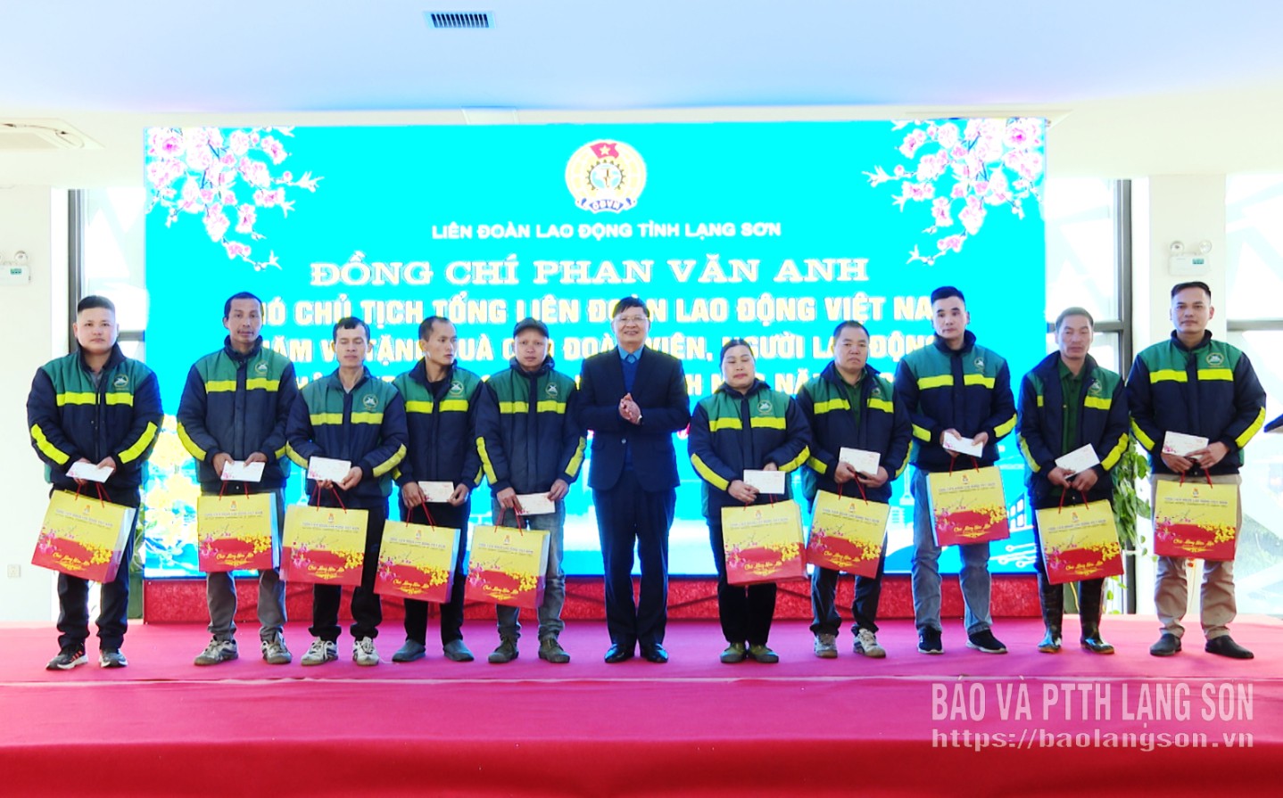 Đồng chí Phan Văn Anh, Phó Chủ tịch Tổng Liên đoàn Lao động Việt Nam tặng quà cho đoàn viên, người lao động