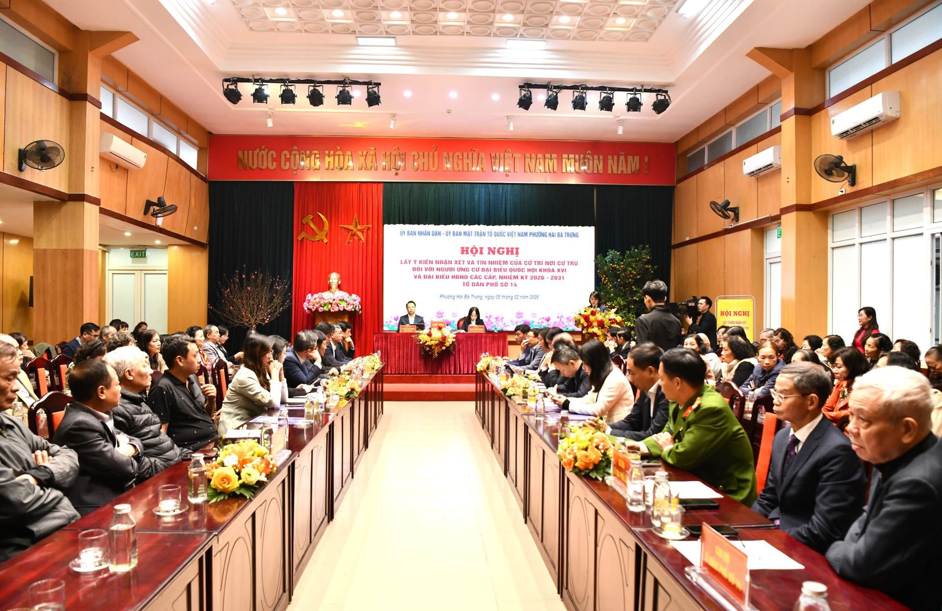 Tại Hội nghị, cử tri đã nghe giới thiệu các tiêu chuẩn của người ứng cử đại biểu Quốc hội, đại biểu HĐND và tóm tắt tiểu sử của người ứng cử đại biểu Quốc hội khóa XVI và đại biểu HĐND nhiệm kỳ 2026-2031, hiện đang cư trú trên địa bàn phường Hai Bà Trưng.