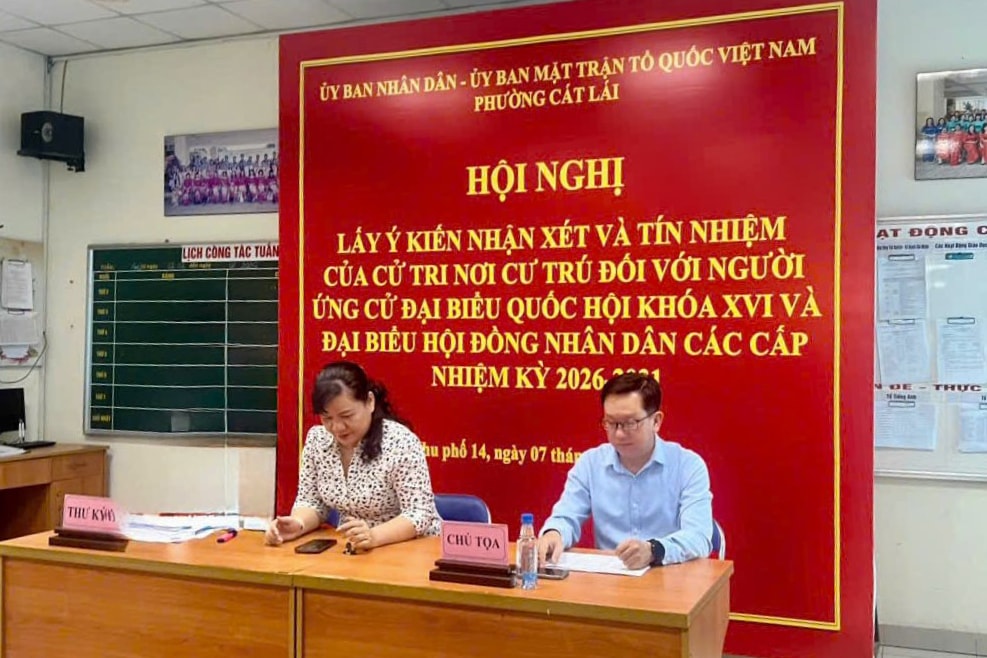 Hội nghị lấy ý kiến nhận xét và tín nhiệm của cử tri nơi cư trú đối với người ứng cử ĐBQH và Đại biểu HĐND các cấp tại phường Cát Lái, TP. Hồ Chí Minh