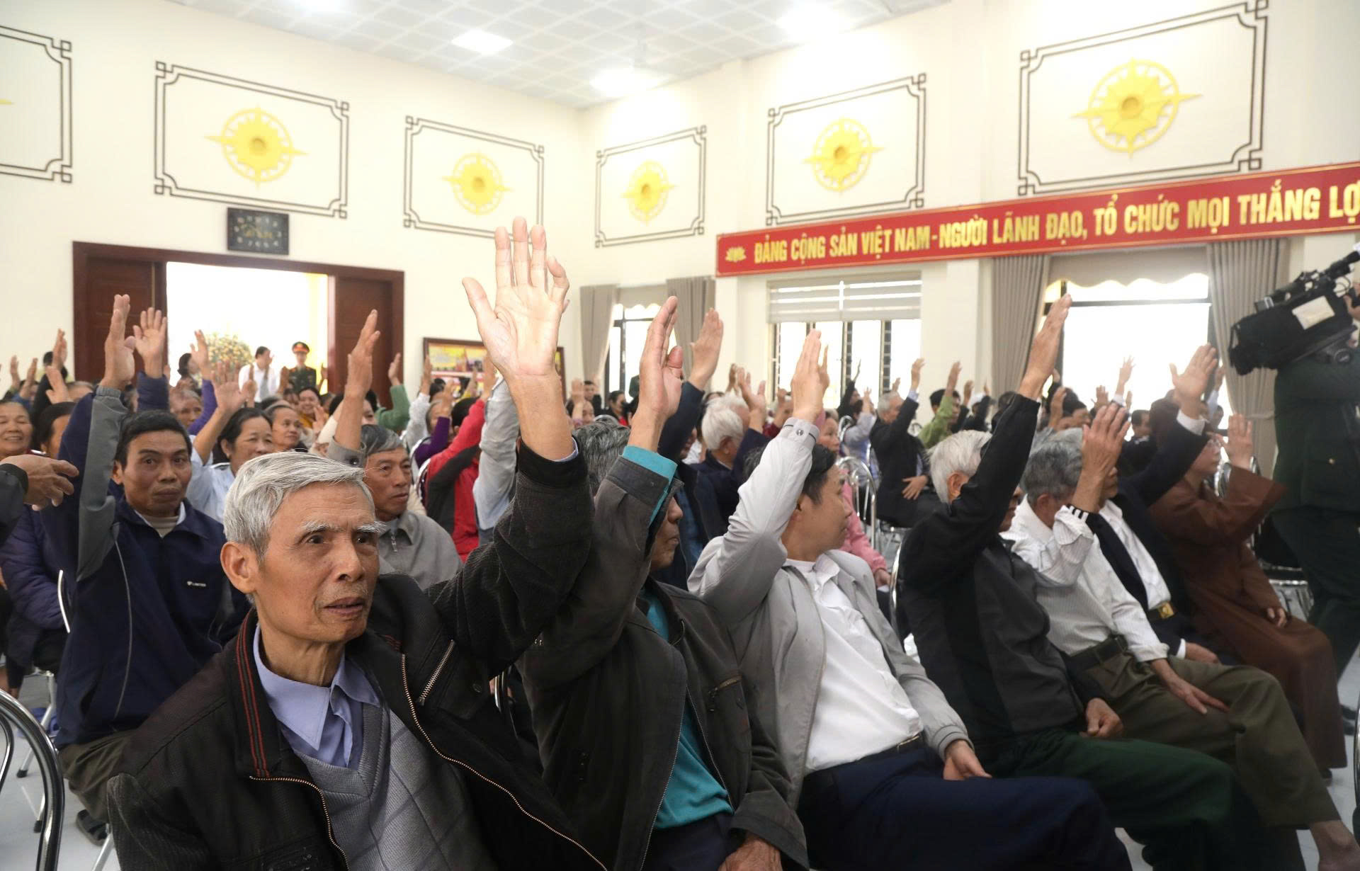 100% cử tri tham dự đã biểu quyết, nhất trí tín nhiệm Đại tướng Nguyễn Tân Cương tham gia ứng cử đại biểu Quốc hội khóa XVI.