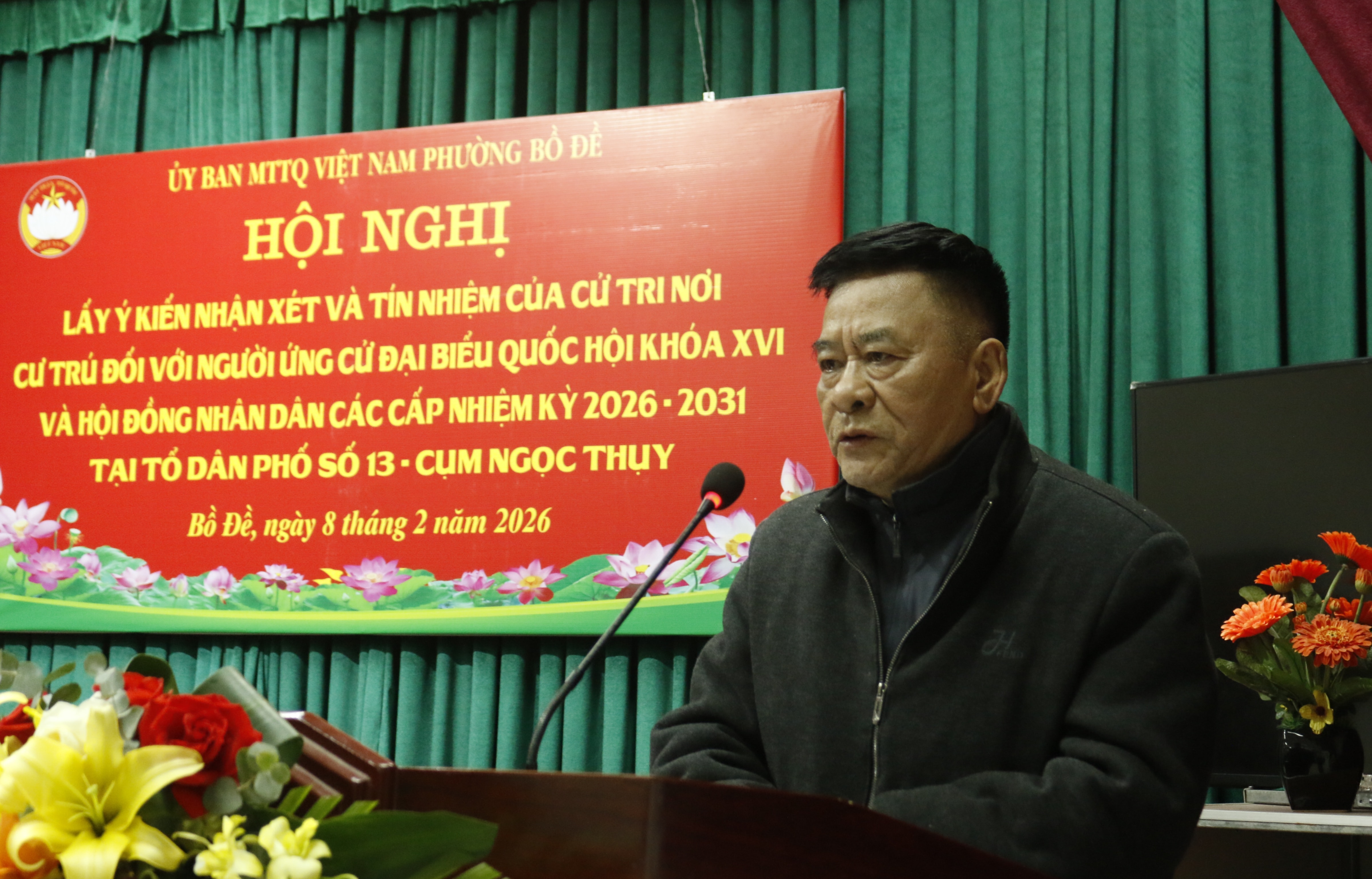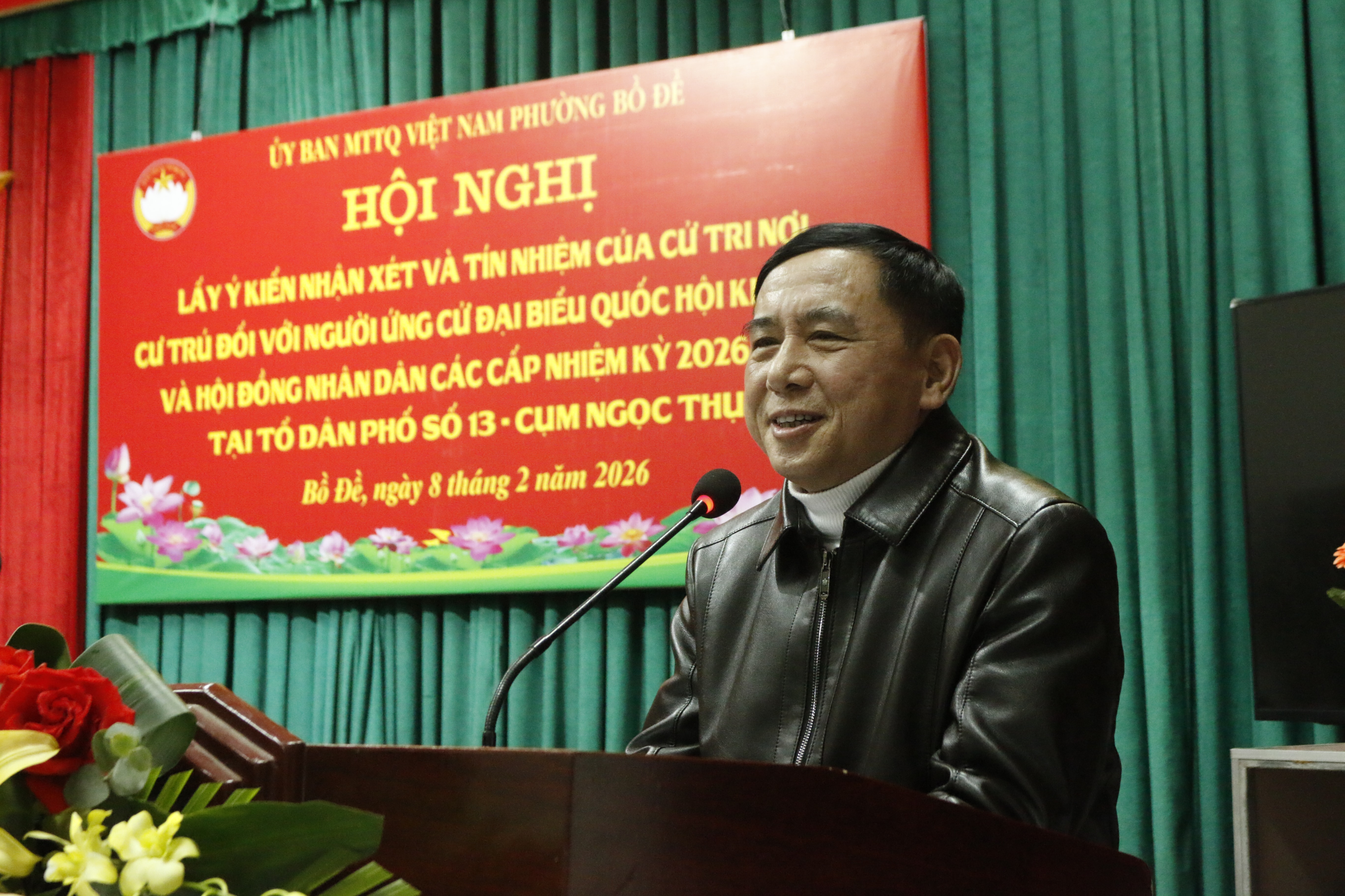 Hội nghị lấy ý kiến nhận xét và tín nhiệm của cử tri nơi cư trú đối với người ứng cử đại biểu Quốc hội Khóa XVI và Hội đồng nhân dân các cấp nhiệm kỳ 2026 – 2031 tại tổ dân phố số 13 – cụm Ngọc Thụy