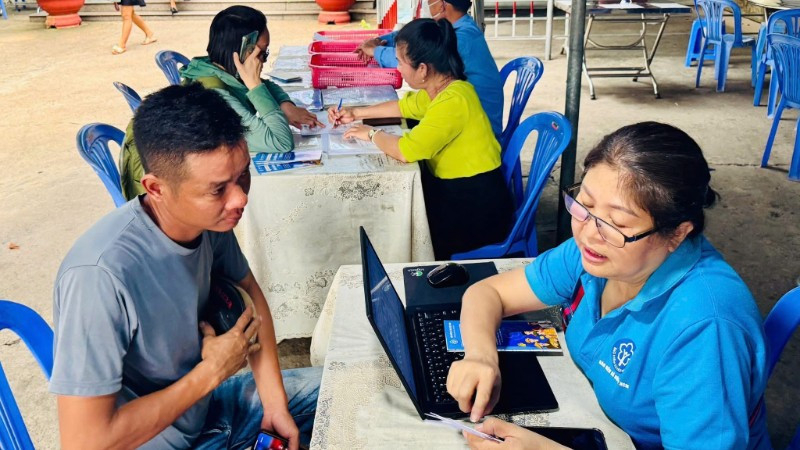 Tuyên truyền chính sách bảo hiểm xã hội, bảo hiểm y tế đối với người lao động làm việc tại các Khu công nghiệp. (Ảnh: QUÝ HIỀN)