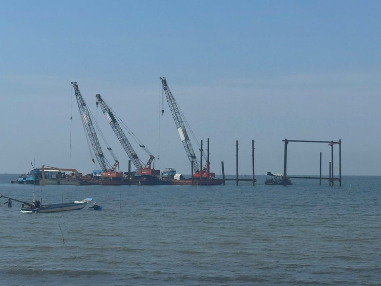 Ngành điện gấp rút triển khai xây dựng tạm đoạn tuyến trên không với khoảng năm trụ (tính từ trụ đấu nối cáp ngầm tiếp bờ hiện hữu) đến vị trí điểm sự cố.