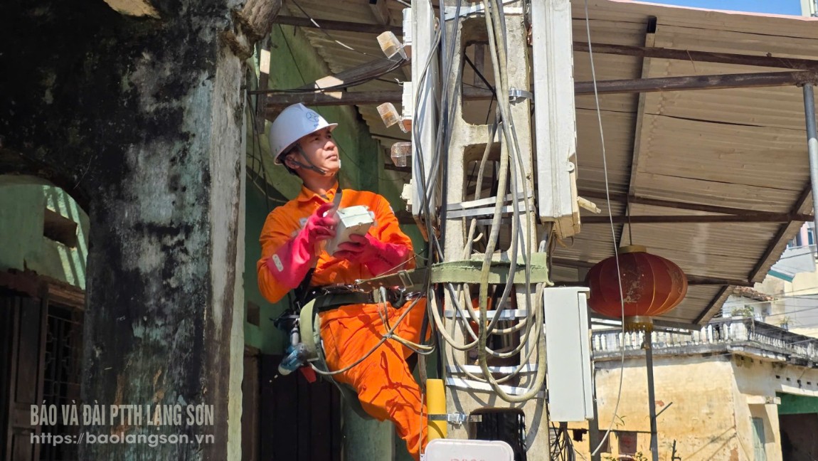 Cán bộ Đội quản lý Điện lực khu vực Tràng Định kiểm tra công tơ trước khi thay thế cho khách hàng