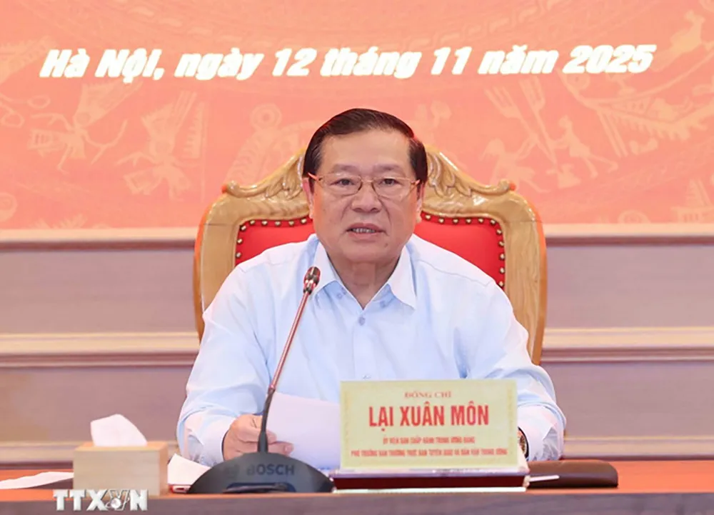 Phó Trưởng Ban Thường trực Ban Tuyên giáo và Dân vận Trung ương Lại Xuân Môn phát biểu tại phiên họp. Ảnh: TTXVN
