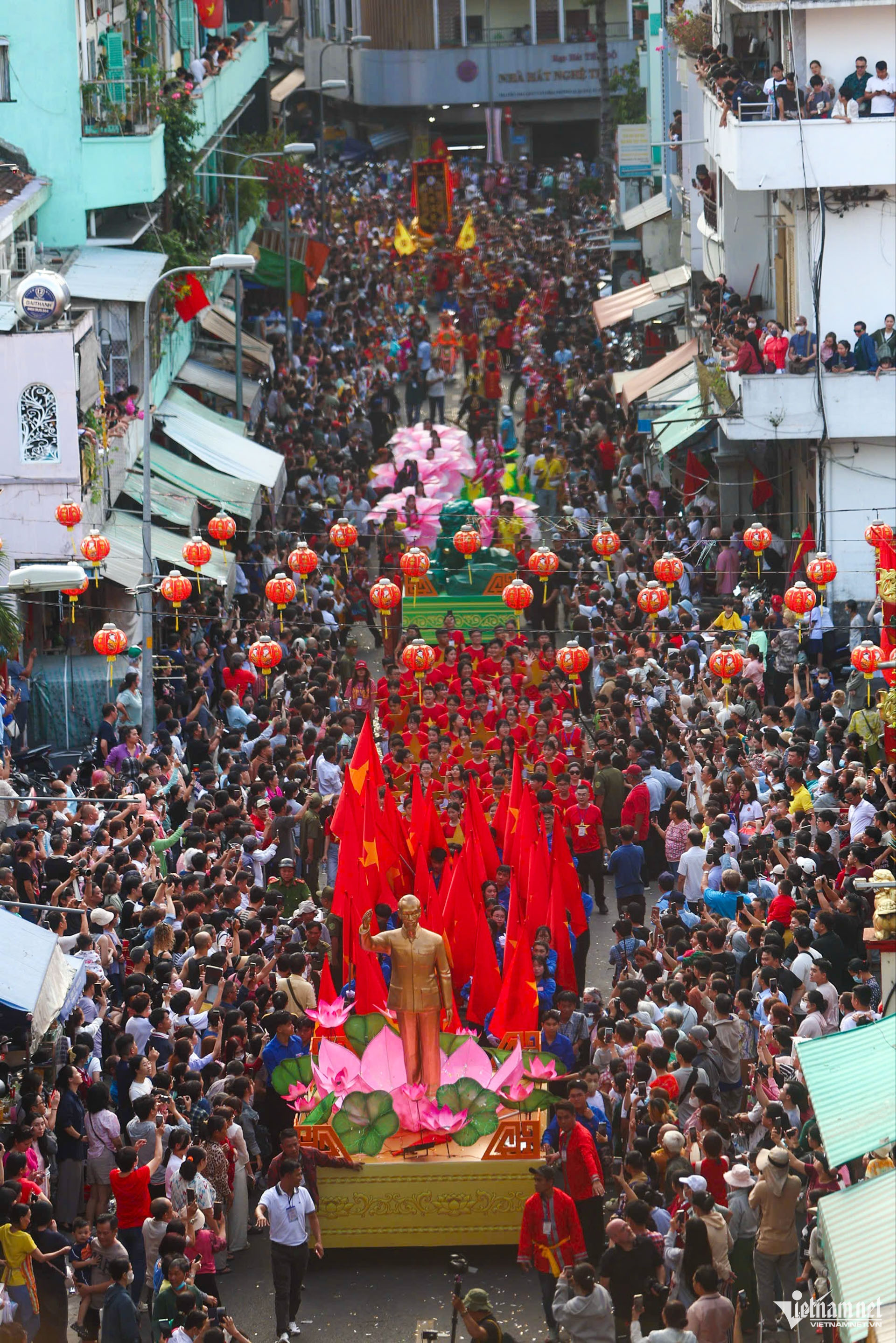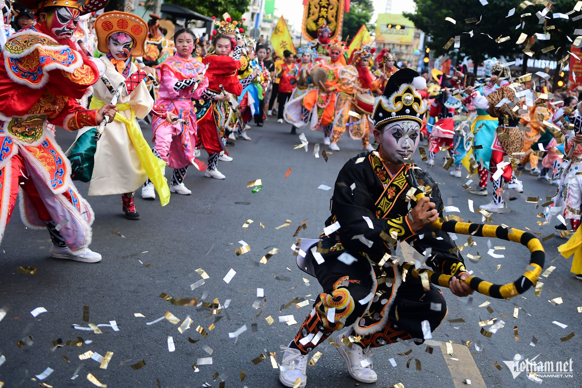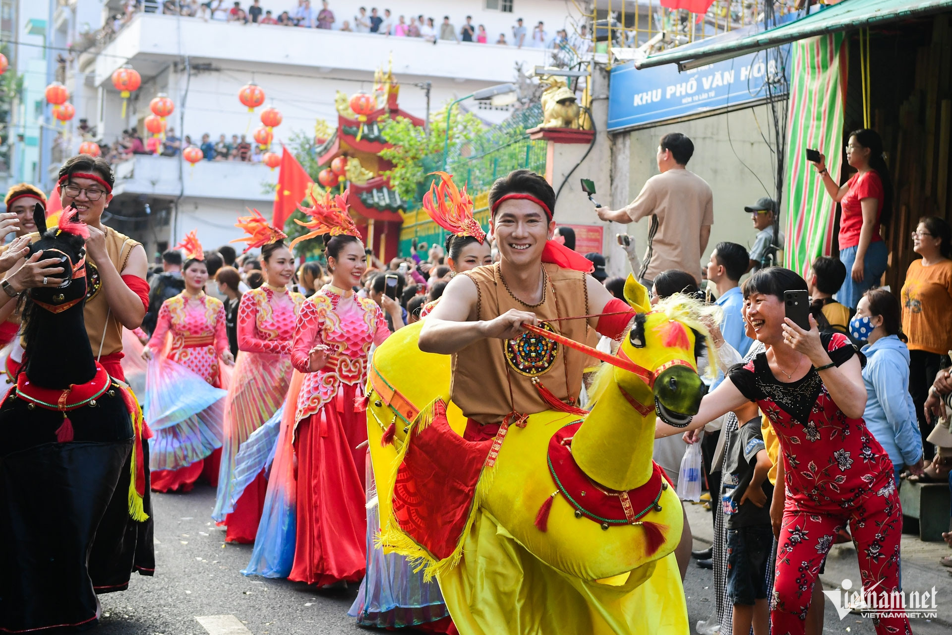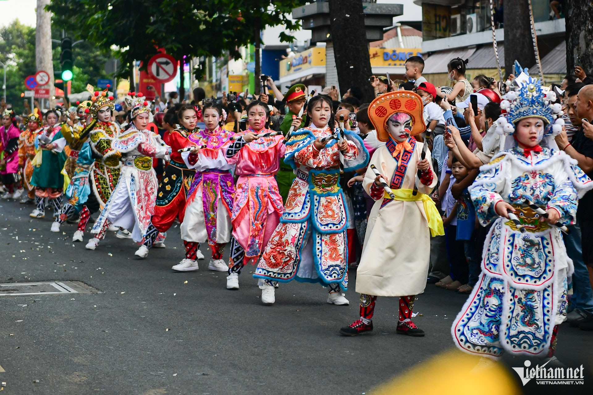 Chiều 3/3 (15 tháng Giêng), hàng nghìn người đổ về khu vực Chợ Lớn, TPHCM để đón xem buổi diễu hành nghệ thuật đường phố nhân dịp Tết Nguyên tiêu.