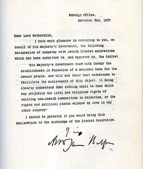 Bản gốc Tuyên bố Balfour. Ảnh: Institute for Palestine Studies