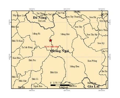 Trung tâm báo tin động đất và cảnh báo sóng thần - Viện Các Khoa học Trái đất thuộc Viện Hàn lâm Khoa học và Công nghệ Việt Nam cho biết, hệ thống của Trung vừa ghi nhận một trận động đất mạnh 4.1 độ xảy ra tại khu vực xã Măng Bút, tỉnh Quảng Ngãi. Cụ thể, trận động đất xảy ra lúc 9h58 phút (giờ Hà Nội), tại vị trí có tọa độ 14.863 độ vĩ Bắc - 108.143 độ kinh Đông. Độ sâu chấn tiêu của trận động đất là khoảng 8.1 km. Đây là trận động đất được đánh giá thuộc cấp độ rủi ro thiên tai cấp 0.