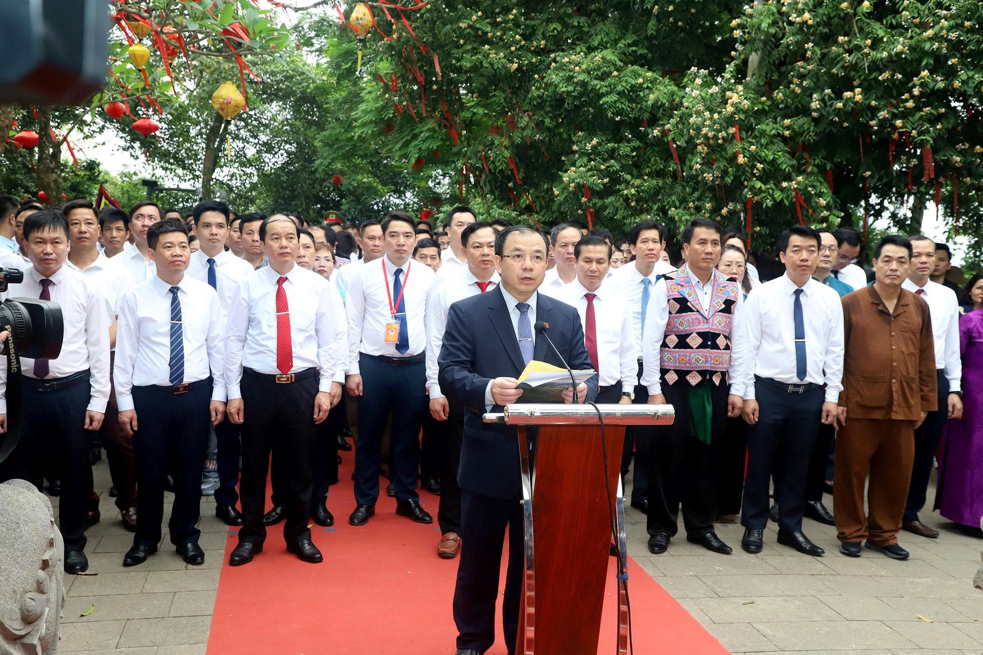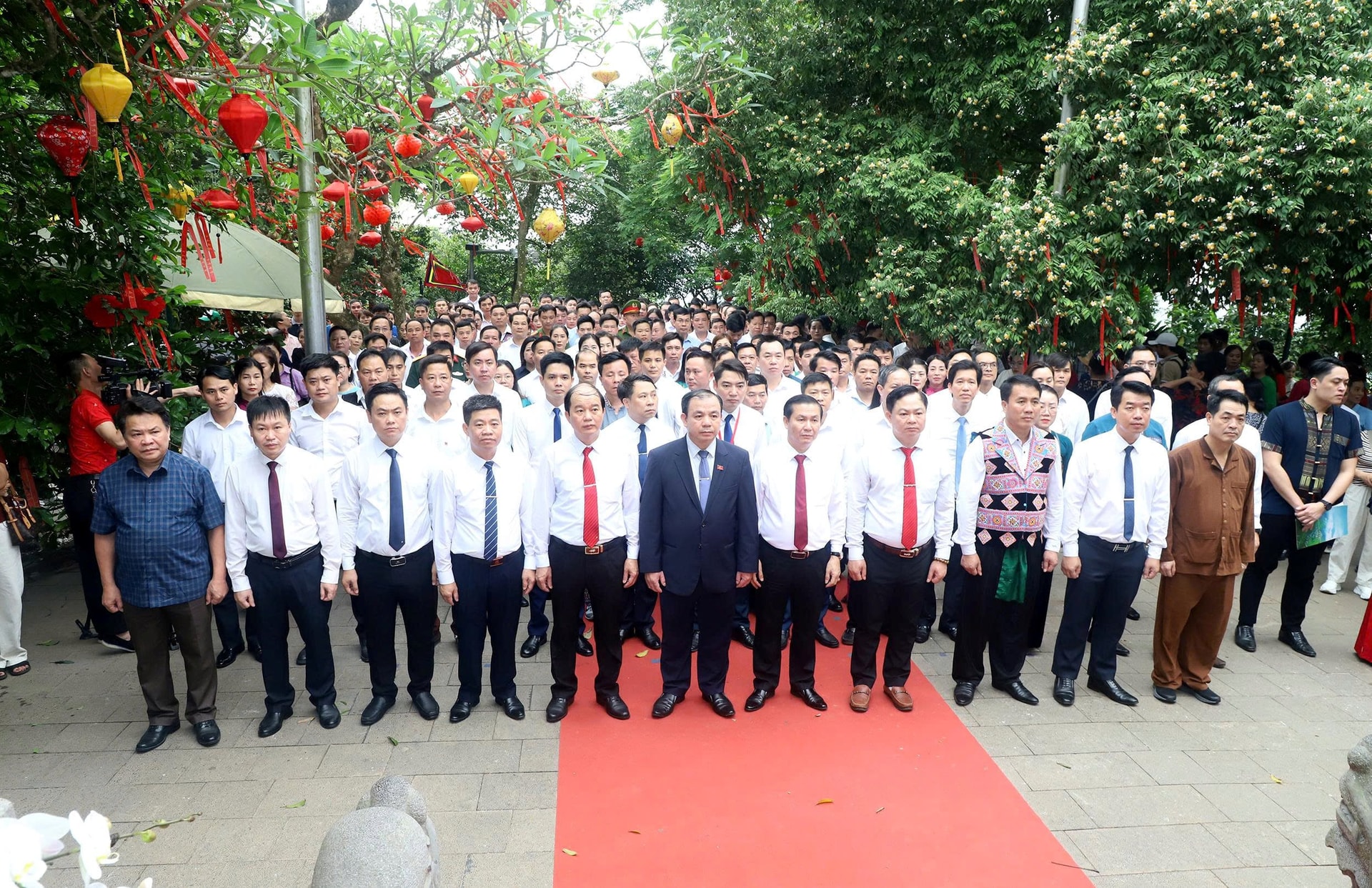 Trong không khí trang nghiêm, các đại biểu thành kính dâng hương, hoa và lễ vật, bày tỏ lòng biết ơn sâu sắc đối với công lao dựng nước của các bậc tiền nhân. Thay mặt đoàn, đồng chí Hà Văn Di – Tỉnh ủy viên, Bí thư Đảng ủy xã Mai Châu, Cụm trưởng Cụm số 12 – đã đọc lời tri ân, báo công lên anh linh các Vua Hùng.