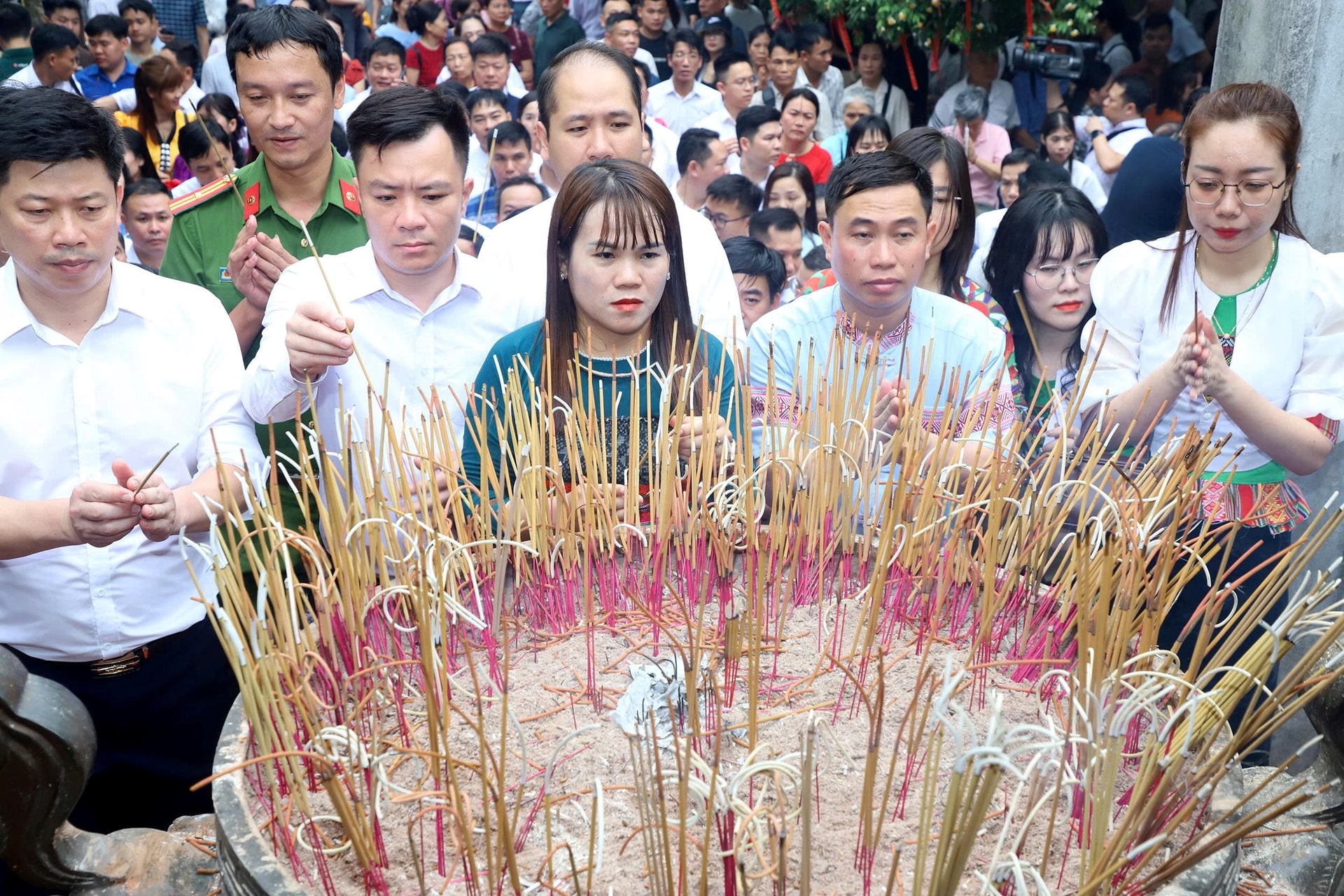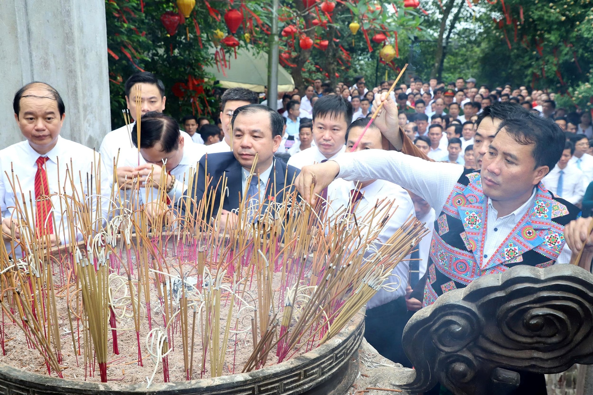 Đoàn đại biểu và nhân dân 11 xã thuộc cụm số 12 thành kính dâng hương tưởng niệm các Vua Hùng.
