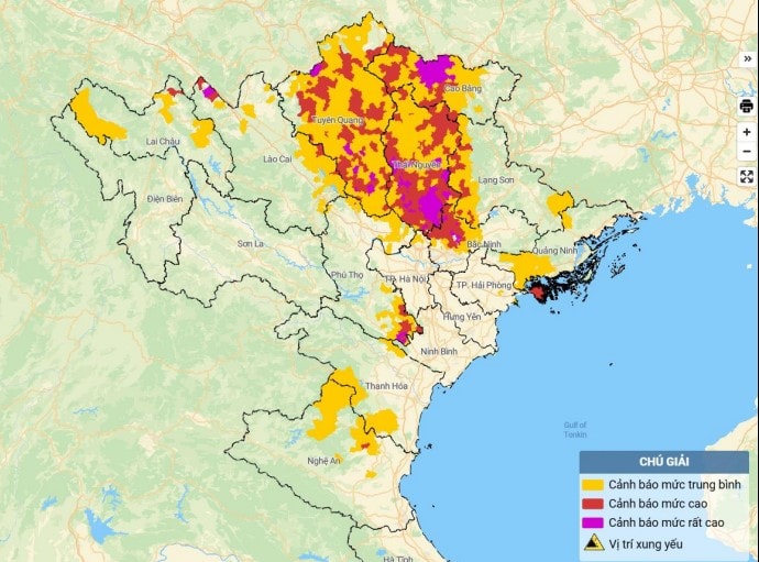 Bản đồ nguy cơ lũ quét, sạt lở đất đá trên các khu vực