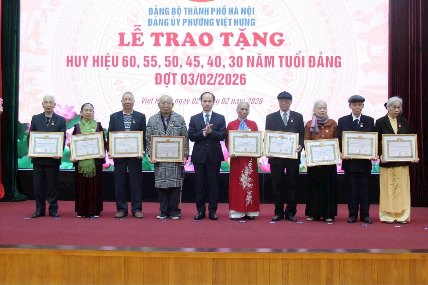 Ban Thường vụ Đảng ủy phường Việt Hưng bày tỏ mong muốn các đảng viên được nhận Huy hiệu Đảng tiếp tục phát huy bề dày kinh nghiệm, tích cực tham gia xây dựng Đảng, chính quyền, giáo dục truyền thống cách mạng cho thế hệ trẻ, xứng đáng là tấm gương sáng cho thế hệ trẻ noi theo.