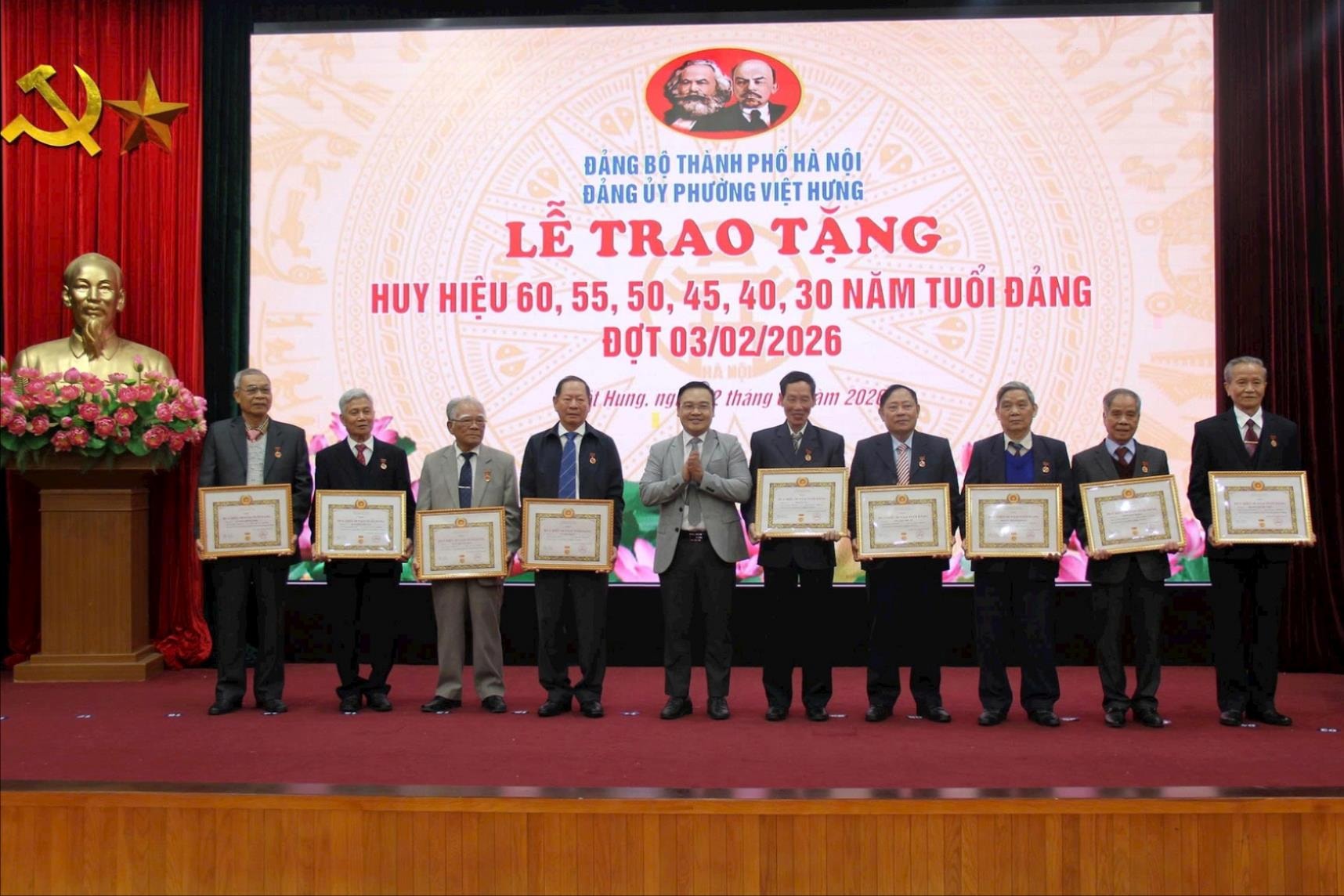 Tại buổi lễ, 120 đảng viên phường Việt Hưng đã vinh dự được trao Huy hiệu 60 năm, 55 năm, 50 năm, 45 năm, 40 năm và 30 năm tuổi Đảng. Đây là sự ghi nhận của Đảng, Nhà nước đối với quá trình phấn đấu, rèn luyện bền bỉ, sự cống hiến không ngừng nghỉ của các đảng viên trong sự nghiệp cách mạng vẻ vang của Đảng và dân tộc.