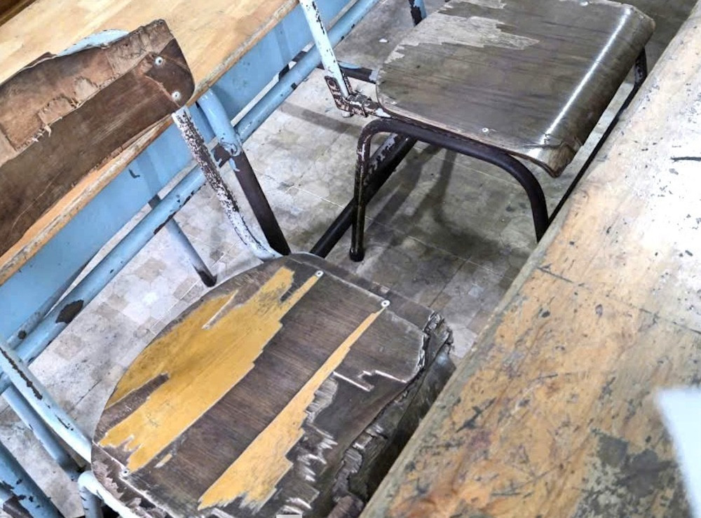 Bàn ghế Trường Tiểu học Vĩnh Tân hư hỏng được phụ huynh phản ánh. Ảnh: Báo Tiền phong