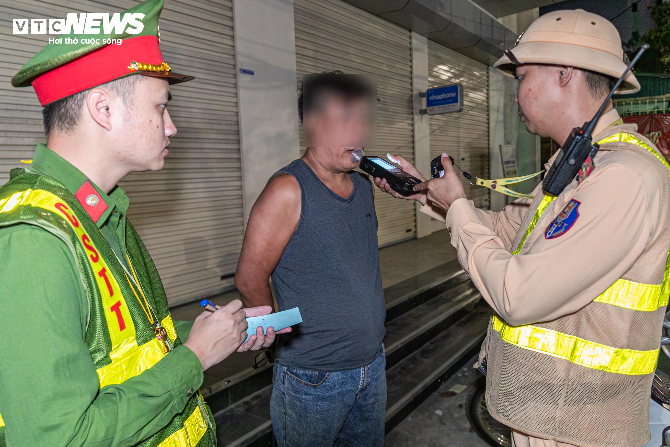 Tại nút Bưởi - Đội Cấn, tổ công tác thuộc Đội CSGT đường bộ số 2, do Trung tá Nguyễn Khánh Toàn phụ trách, liên tục phát hiện người tham giao thông có hơi men. Chỉ trong hơn hai giờ, tổ công tác đã lập biên bản 6 trường hợp vi phạm.