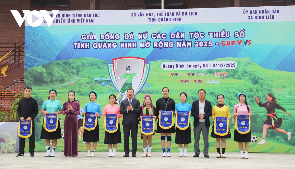 Sáng 3/12, Giải Bóng đá nữ các dân tộc thiểu số tỉnh Quảng Ninh mở rộng năm 2025 – Cúp VTV5 khai mạc tại sân bóng đá thôn Nà Ếch (xã Bình Liêu, tỉnh Quảng Ninh). Giải do Sở Văn hóa, Thể thao và Du lịch tỉnh Quảng Ninh phối hợp với Ban Truyền hình tiếng dân tộc – Đài Truyền hình Việt Nam (VTV5) và UBND xã Bình Liêu tổ chức.