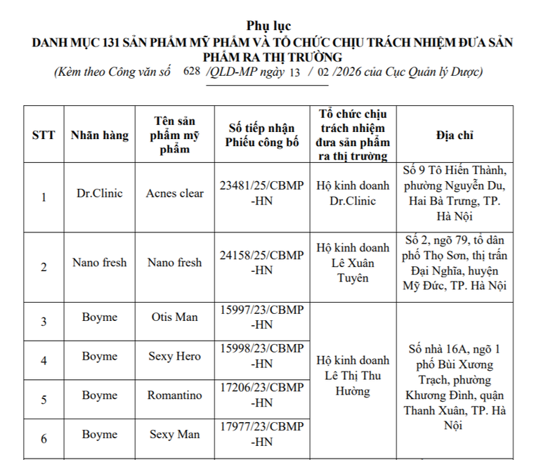 Cụ thể, trong công văn, Cục Quản lý Dược nêu rõ: căn cứ Quyết định số 231/QĐ-SYT ngày 20/1/2026 của Sở Y tế thành phố Hà Nội về việc thu hồi số tiếp nhận Phiếu công bố sản phẩm mỹ phẩm do Công ty cổ phần sản xuất mỹ phẩm Vincos Việt Nam (địa chỉ sản xuất: thôn 3, xã Phú Cát, huyện Quốc Oai (nay là xã Phú Cát) thành phố Hà Nội) sản xuất, đứng tên hoặc ủy quyền cho các tổ chức, cá nhân đứng tên công bố và phân phối sản phẩm mỹ phẩm tại Việt Nam.