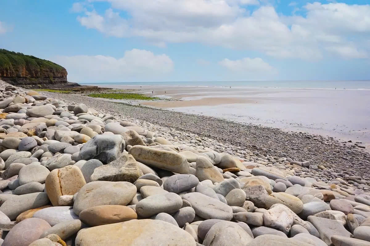 Bãi biển Amroth (Anh) nổi tiếng với lượng đá cuội dày đặc, du khách được cảnh báo không được lấy đá mang về. Ảnh: Coastal Cottages.